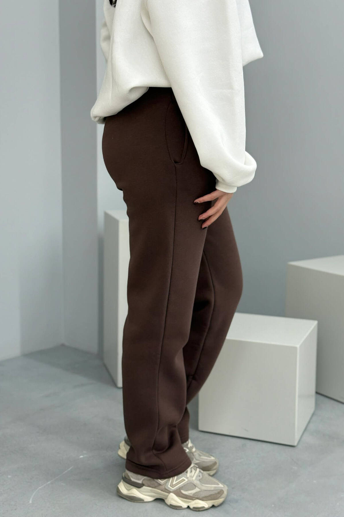 ONE COLOR SIMPLE FLUFFY WOMEN SWEATPANTS BROWN/KAFE