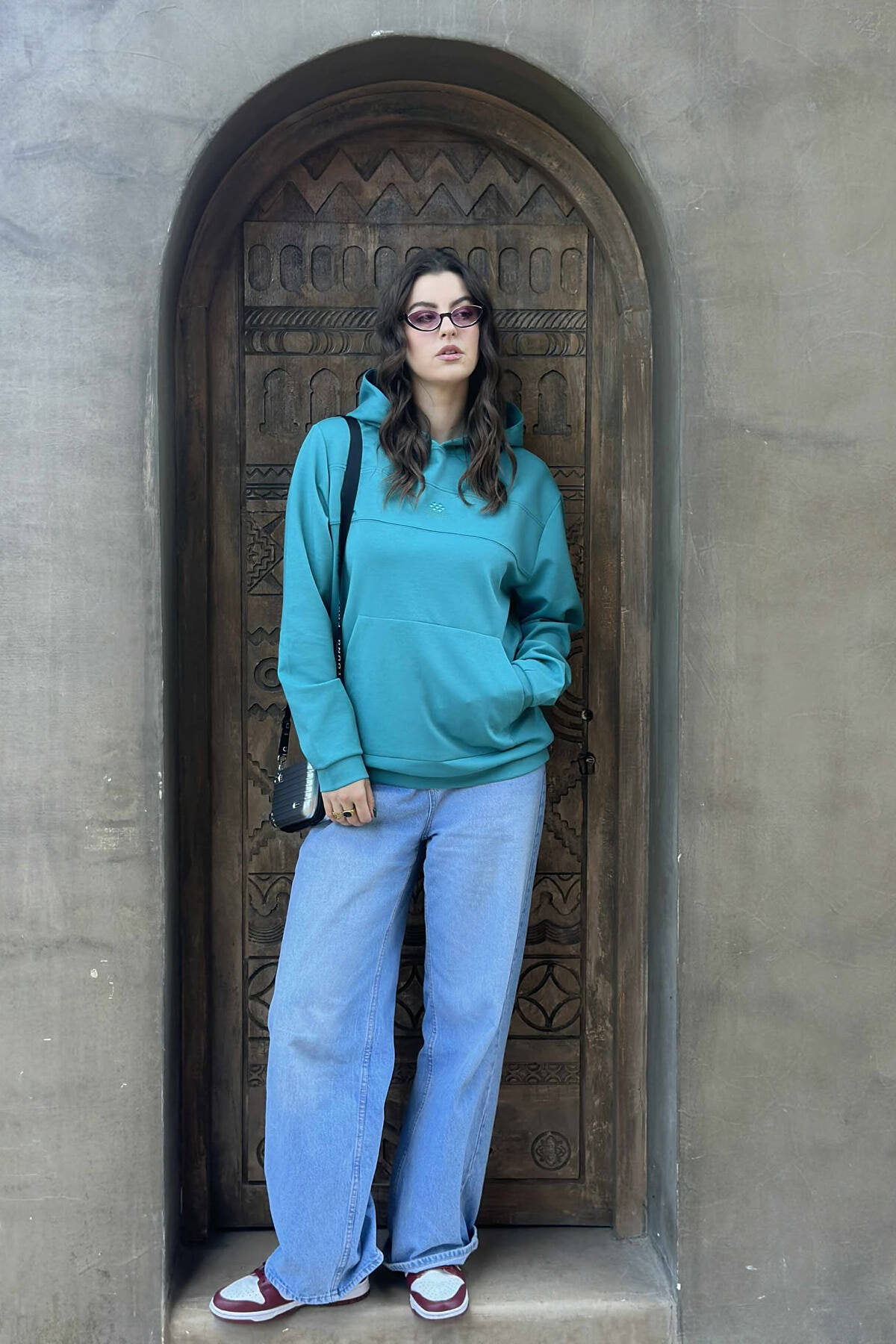 FLUFFY SIMPLE ONE COLOR WOMEN HOODIE GREEN/JESHILE