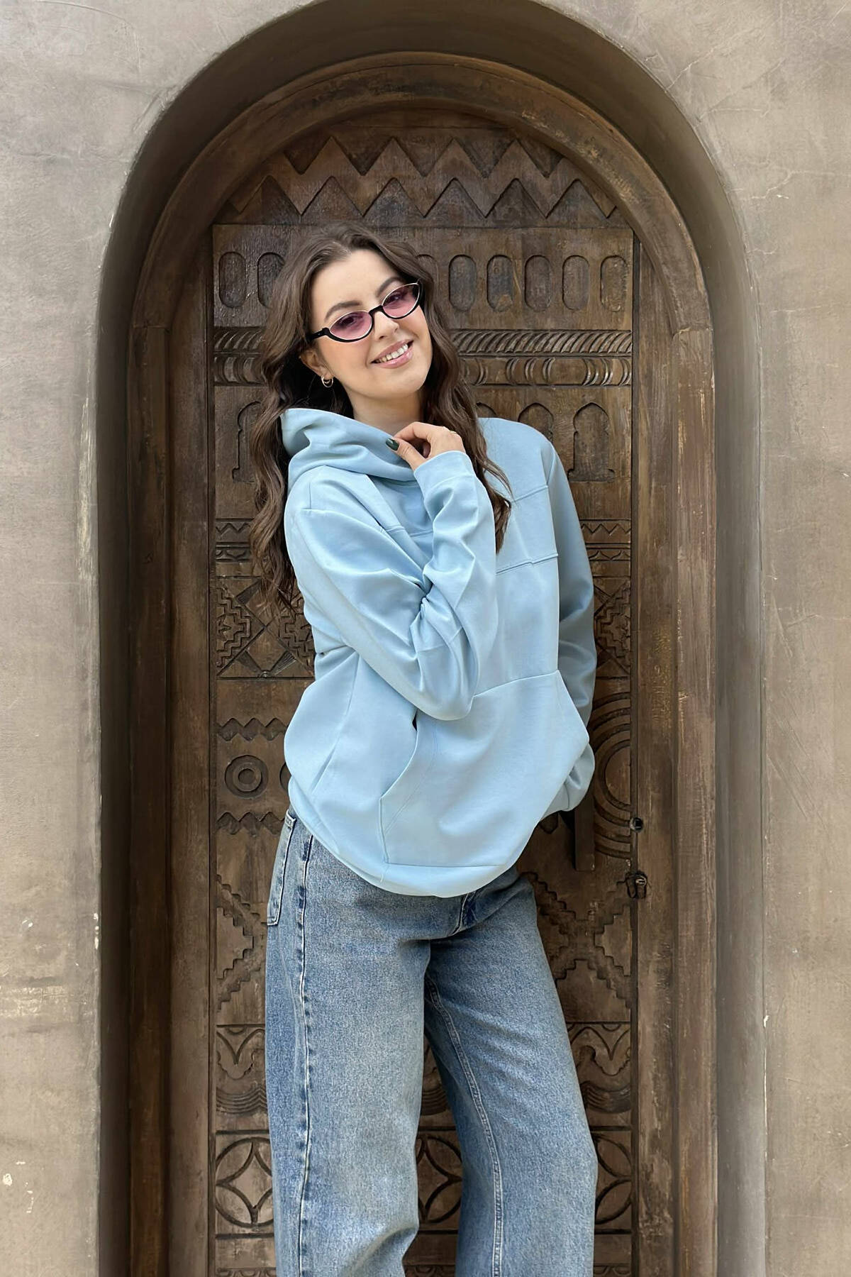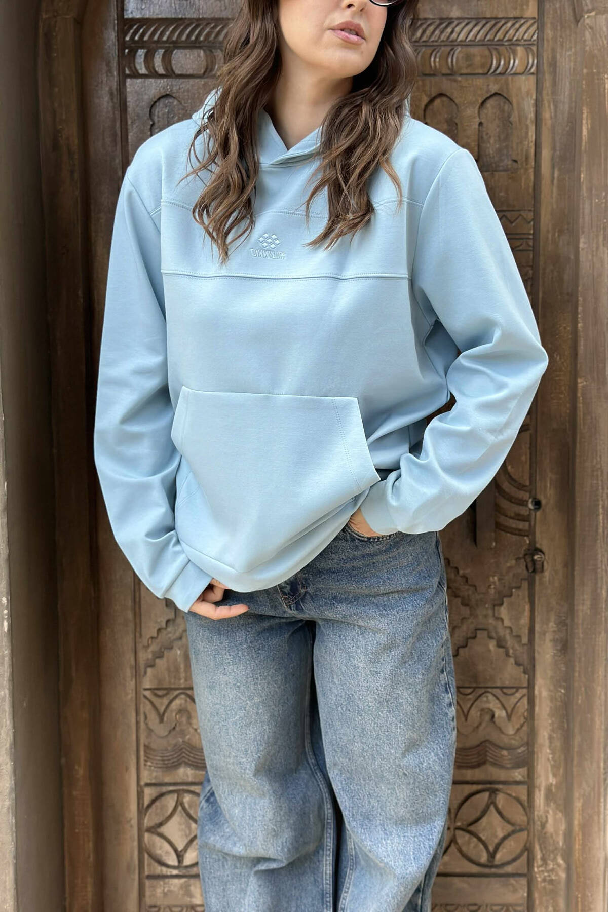 HOODIE NJËNGJYRËSHE ME LOGO TË THJESHTË PARA PËR FEMRA NË NGJYRË BLU TË ZBARDHUR