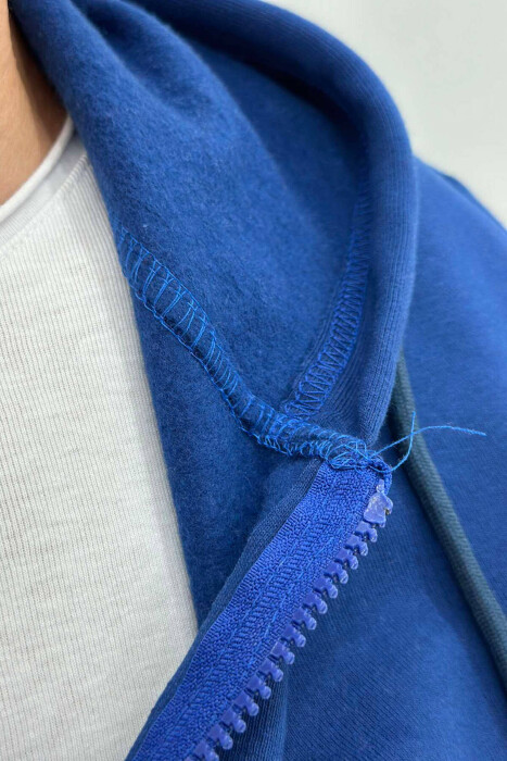 Bejejni tuajen xhaketen e thjeshte nje ngjyreshe me kapuc dhe zinxhir po ne ngjyre blu , me detajet e dy xhepave ne pjesen para , vjen me nje super material dhe e rehatshme , do behet patjeter pjese e perditshmerise tuaj.