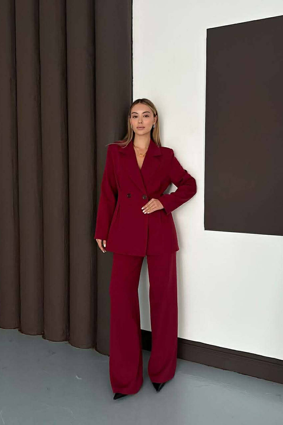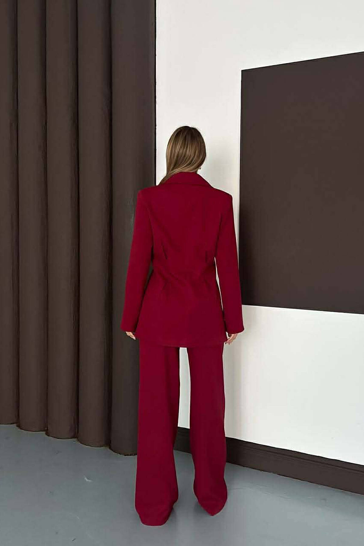 ONE COLOR SIMPLE JACKET+ WIDE LEG TROUSERS WOMAN SET BURGUNDY/VISHNJE