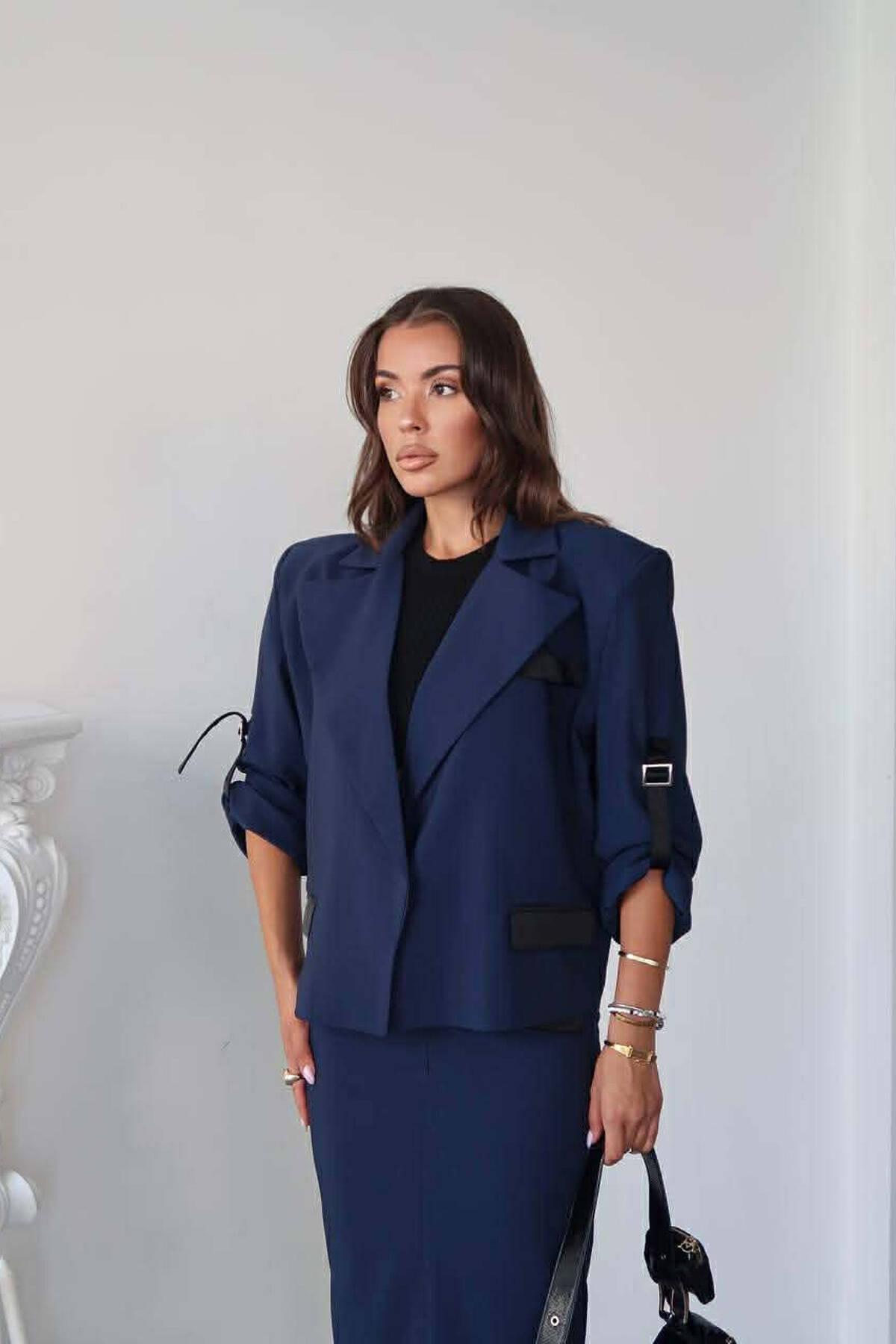 ONE COLOR SIMPLE JACKET+SKIRT WOMEN SET BLUE/BLU