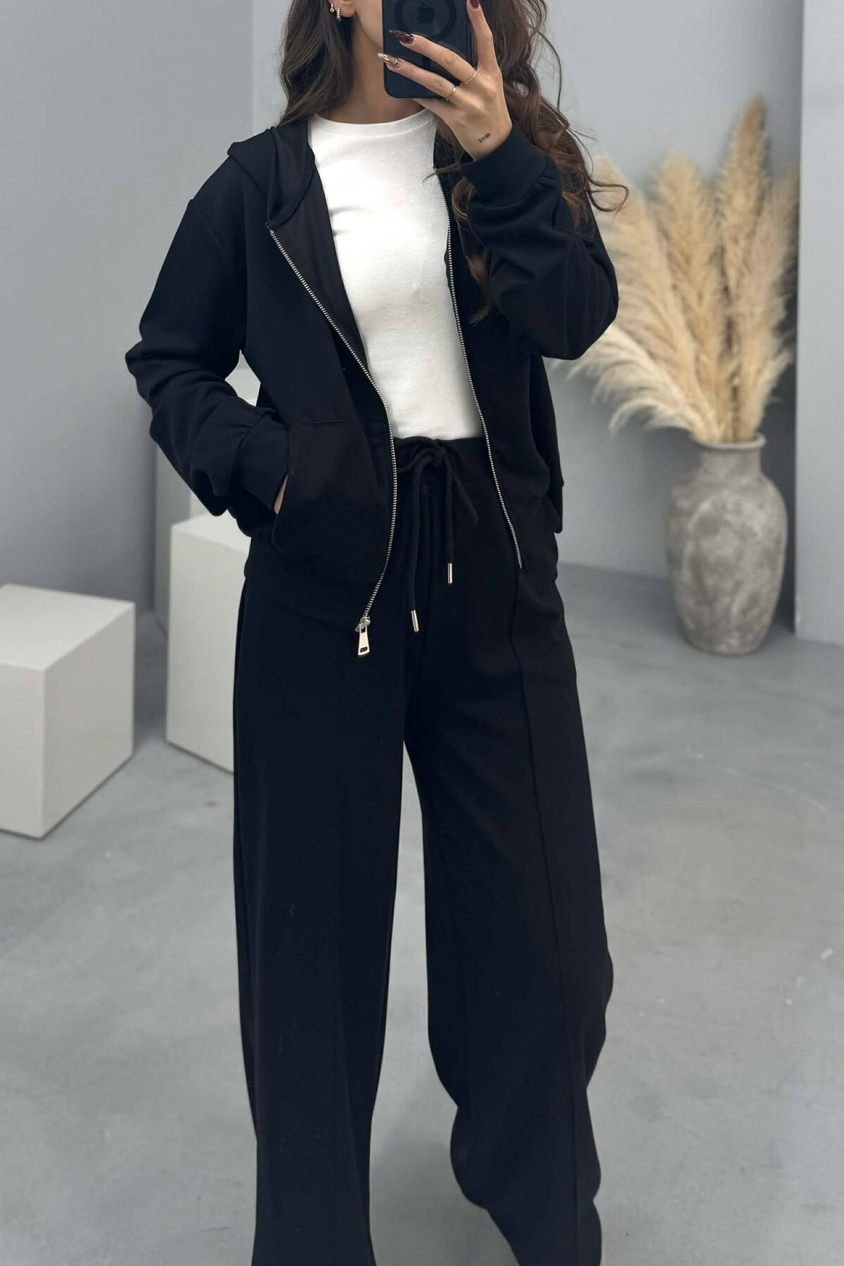 ONE COLOR SIMPLE JACKET+SWEATPANTS WOMEN SET BLACK/ E ZEZE