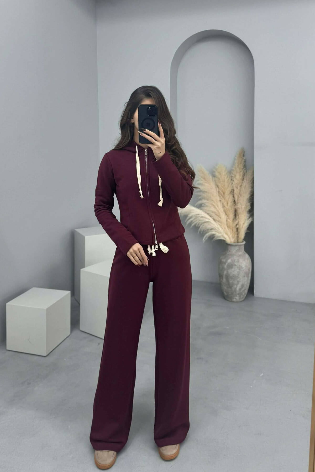 ONE COLOR SIMPLE JACKET+SWEATPANTS WOMEN SET BURGUNDY/VISHNJE