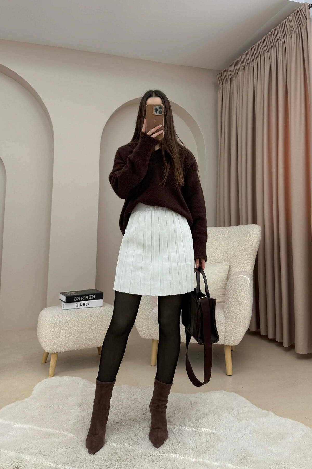 ONE COLOR SIMPLE KNITTED SHORT WOMAN SKIRT WHITE-E BARDHE