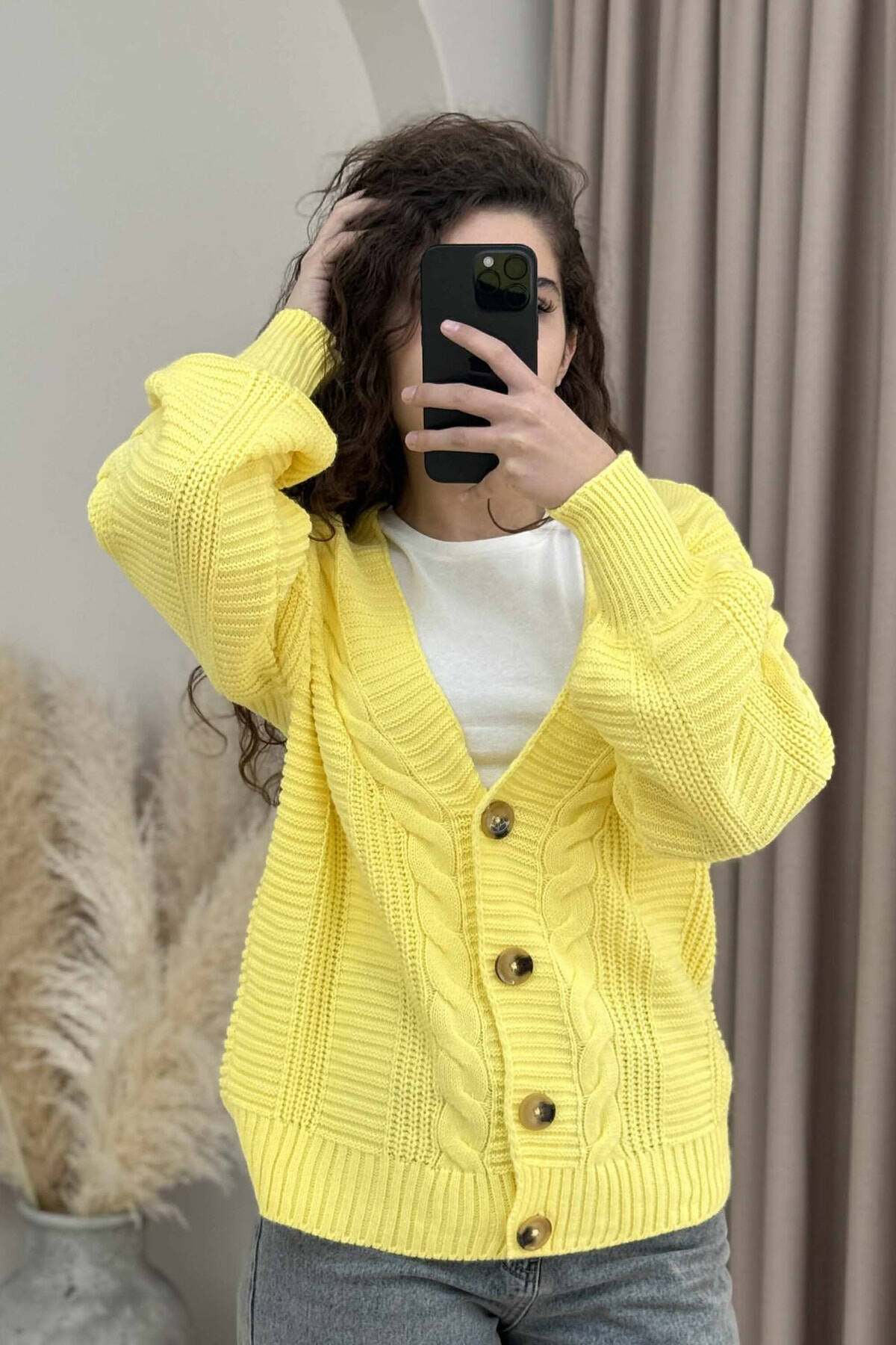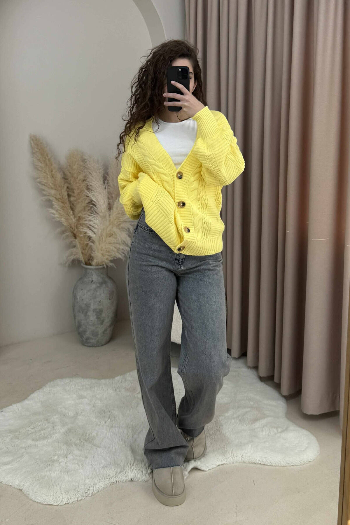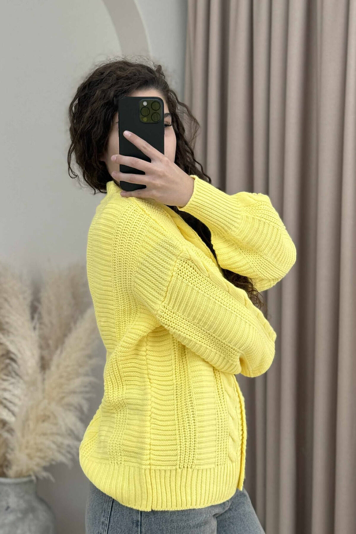 PULOVËR E THJESHTË NJË NGJYRËSHE E THURRUR PËR FEMRA NË NGJYRË TË VERDHË