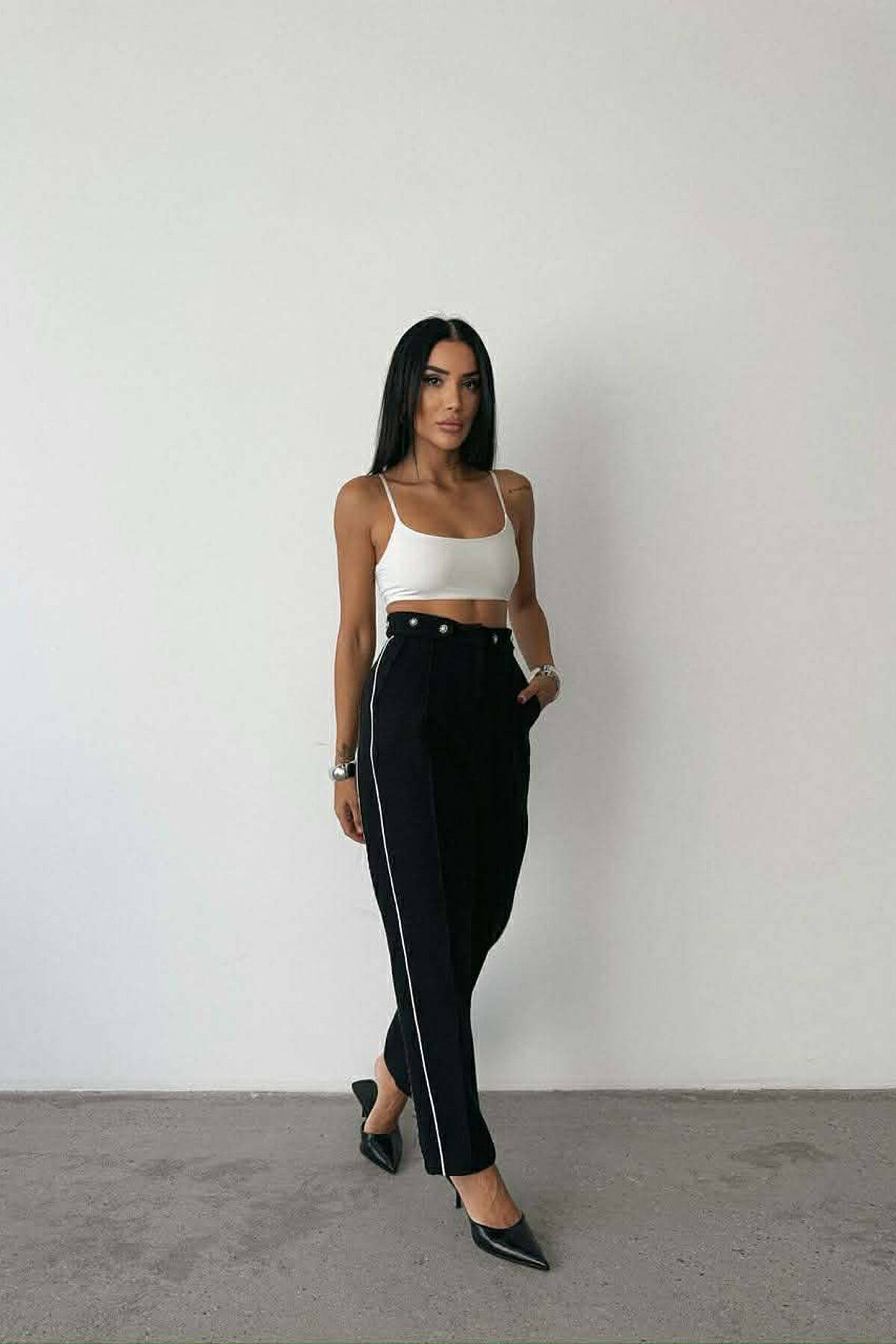 ONE COLOR WIDE LEG BELT DETAIL WOMAN TROUSERS BLACK/ E ZEZE