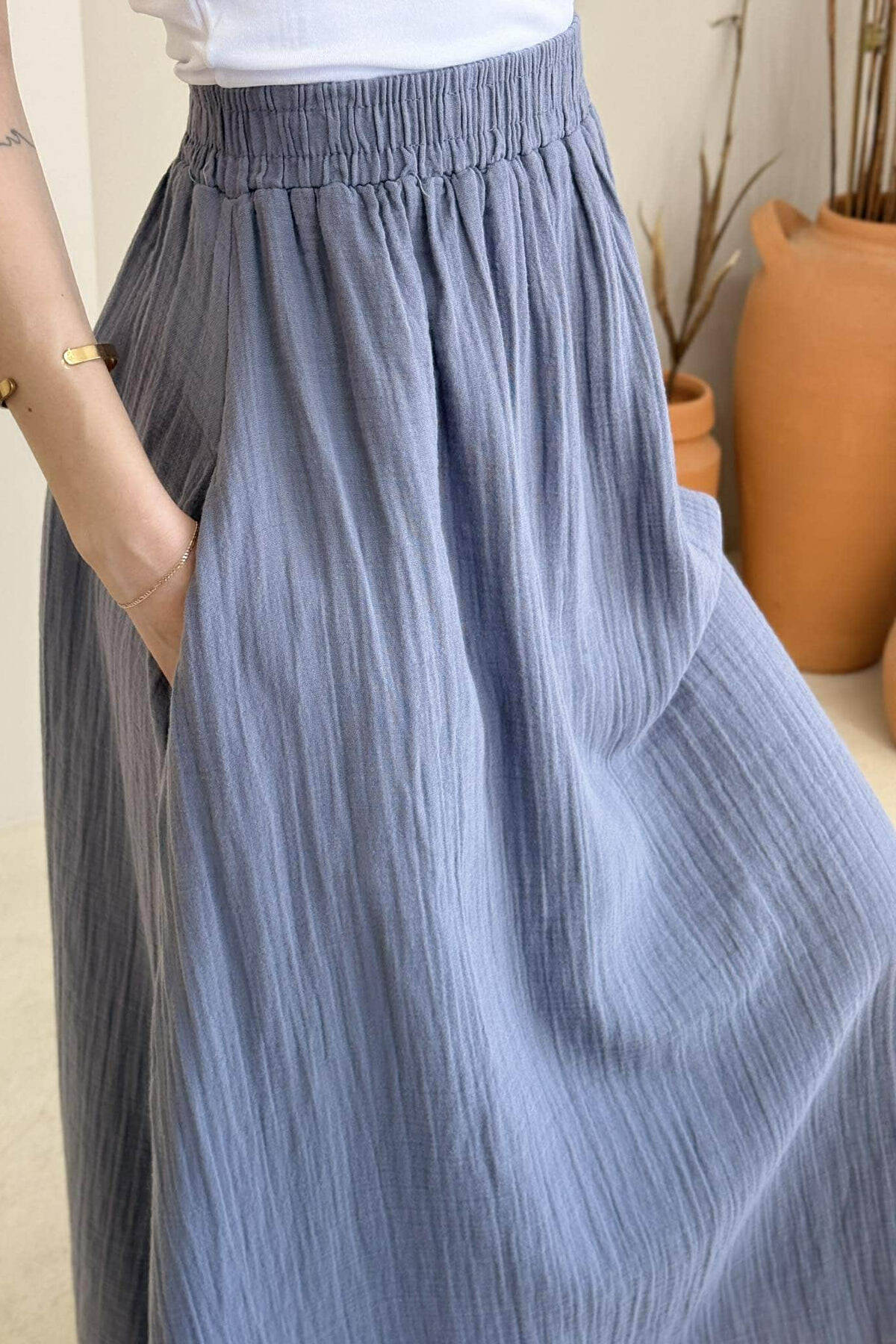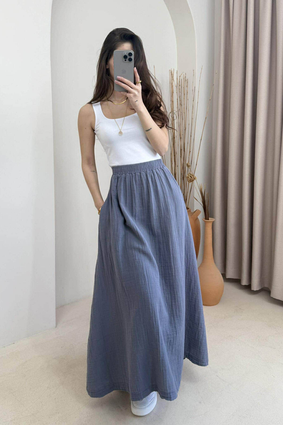 ONE COLOR SIMPLE LONG WOMEN SKIRT GREY/GRI