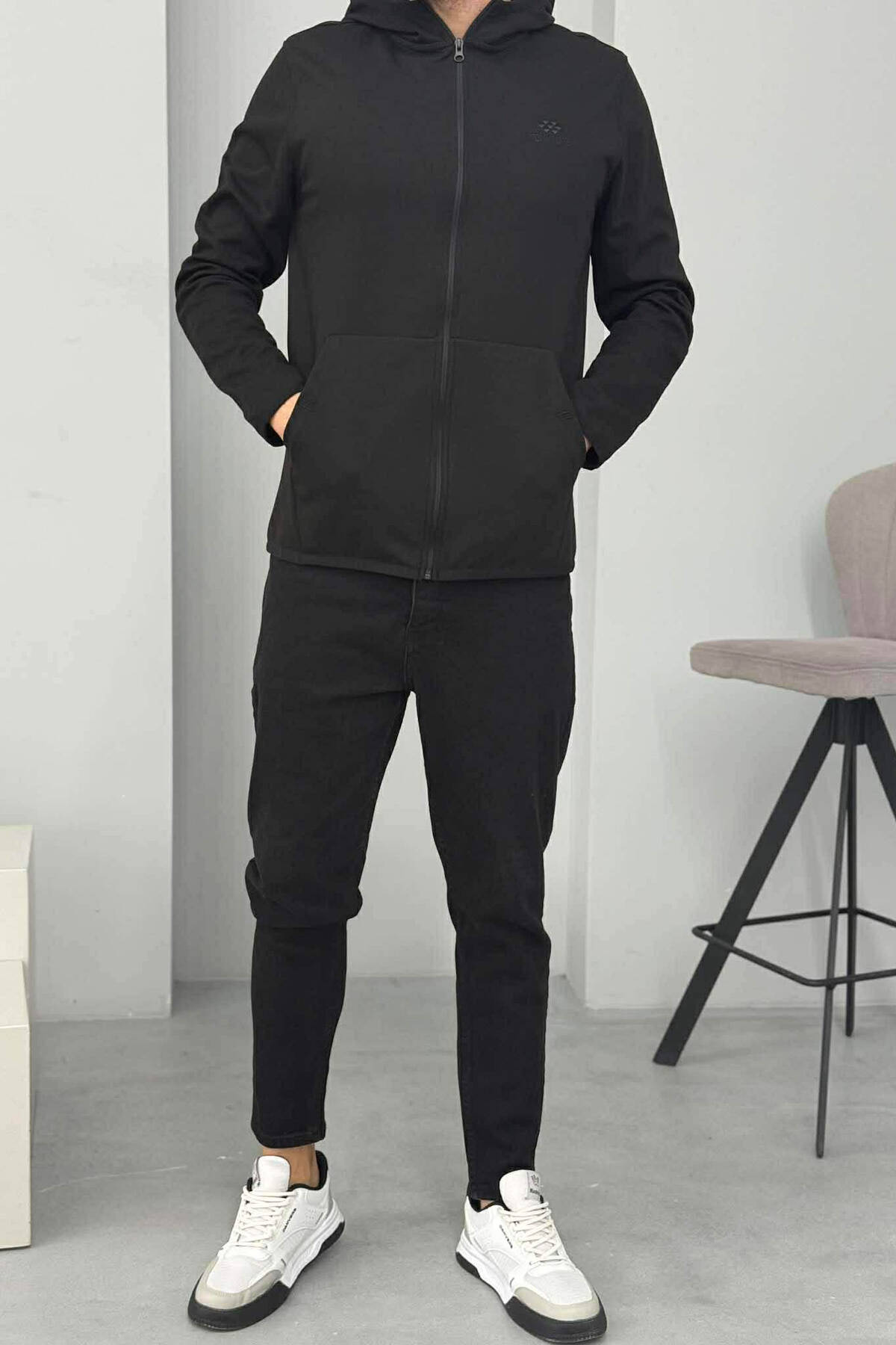 ONE COLOR SIMPLE MEN COTTON JACKETS BLACK/ E ZEZE