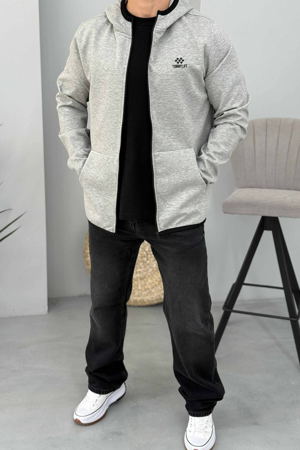 ONE COLOR SIMPLE ZIPPER MEN JACKET LIGHT GREY/GZ