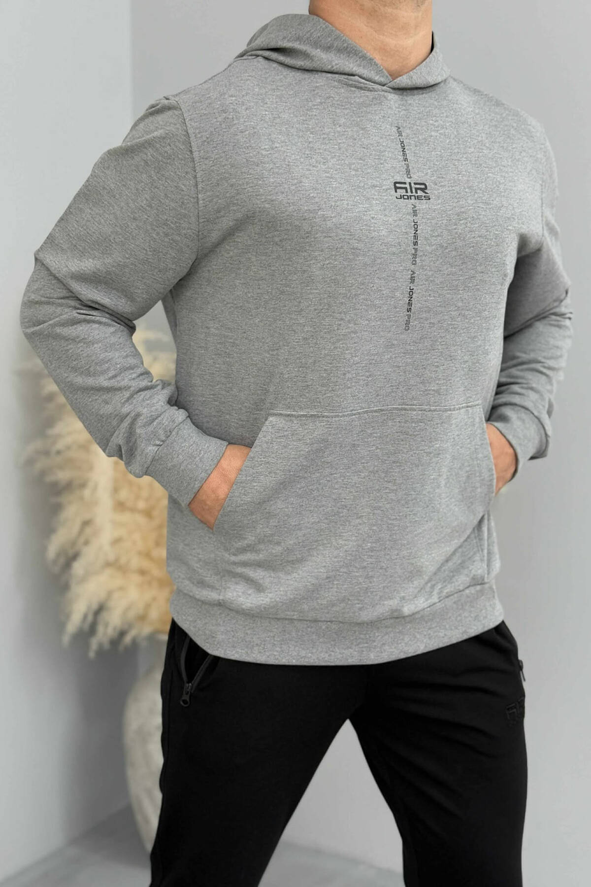 SMALL DETAIL ONE COLOR FLUFFY MEN HOODIE GREY/GRI