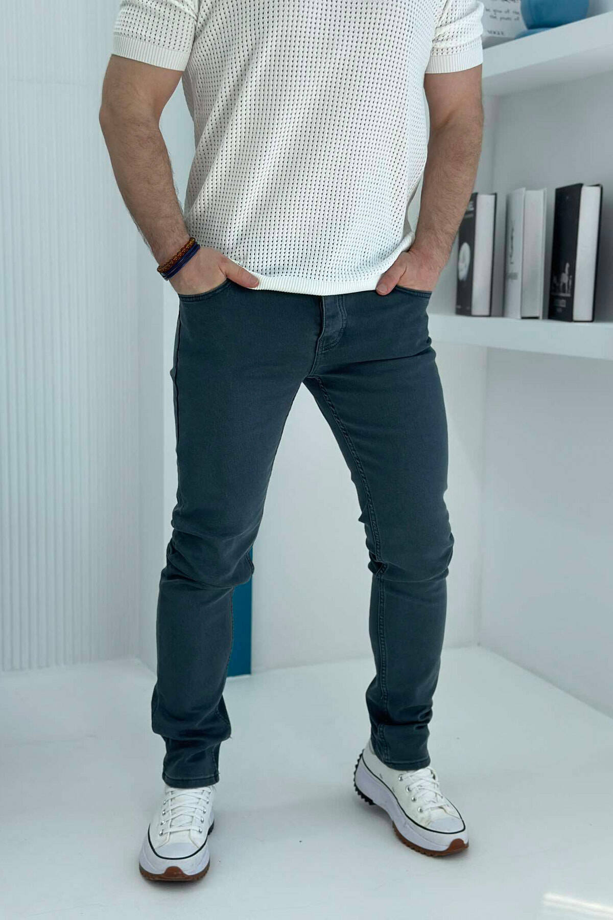ONE COLOR ELASTIC MEN JEANS GREY/GRI