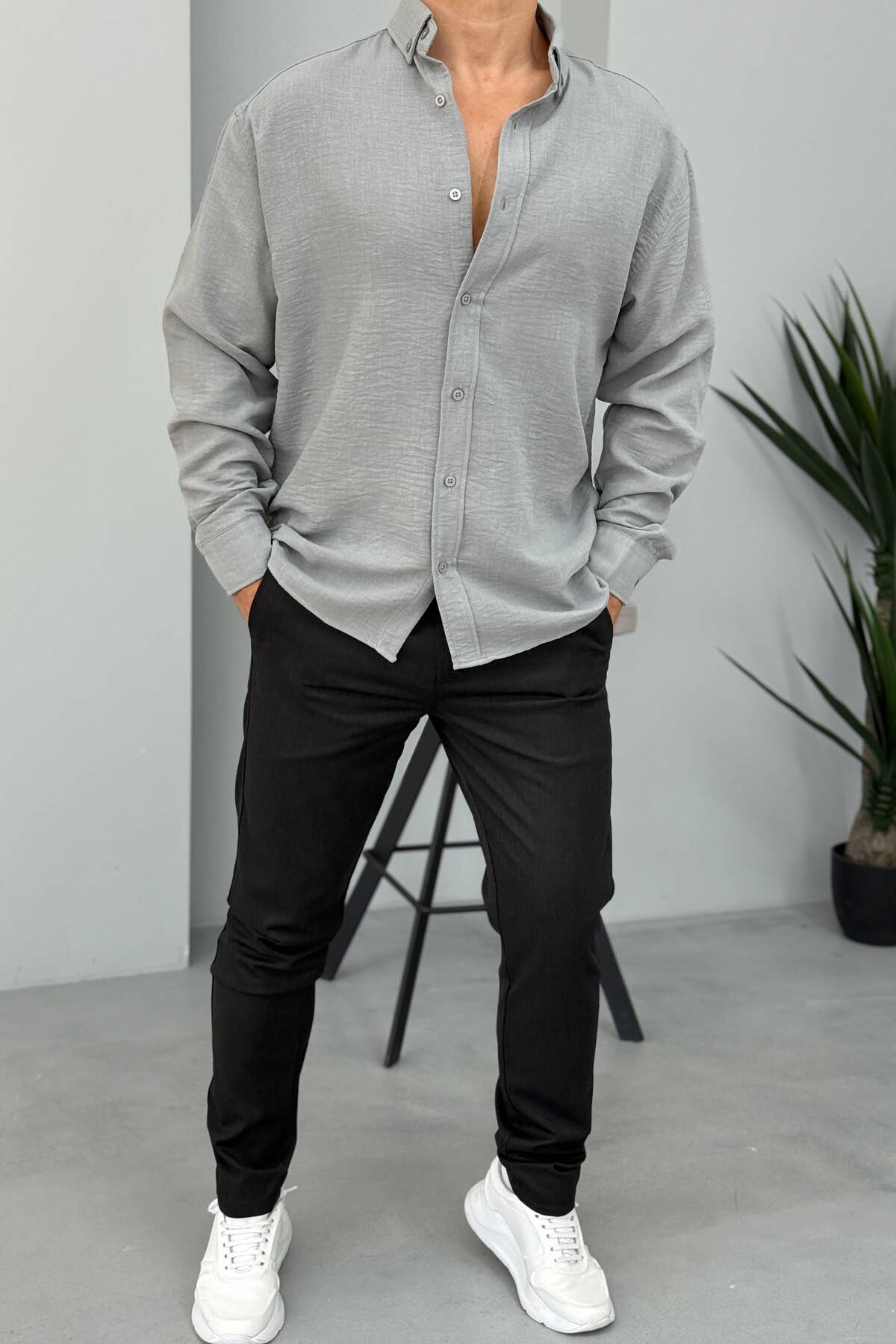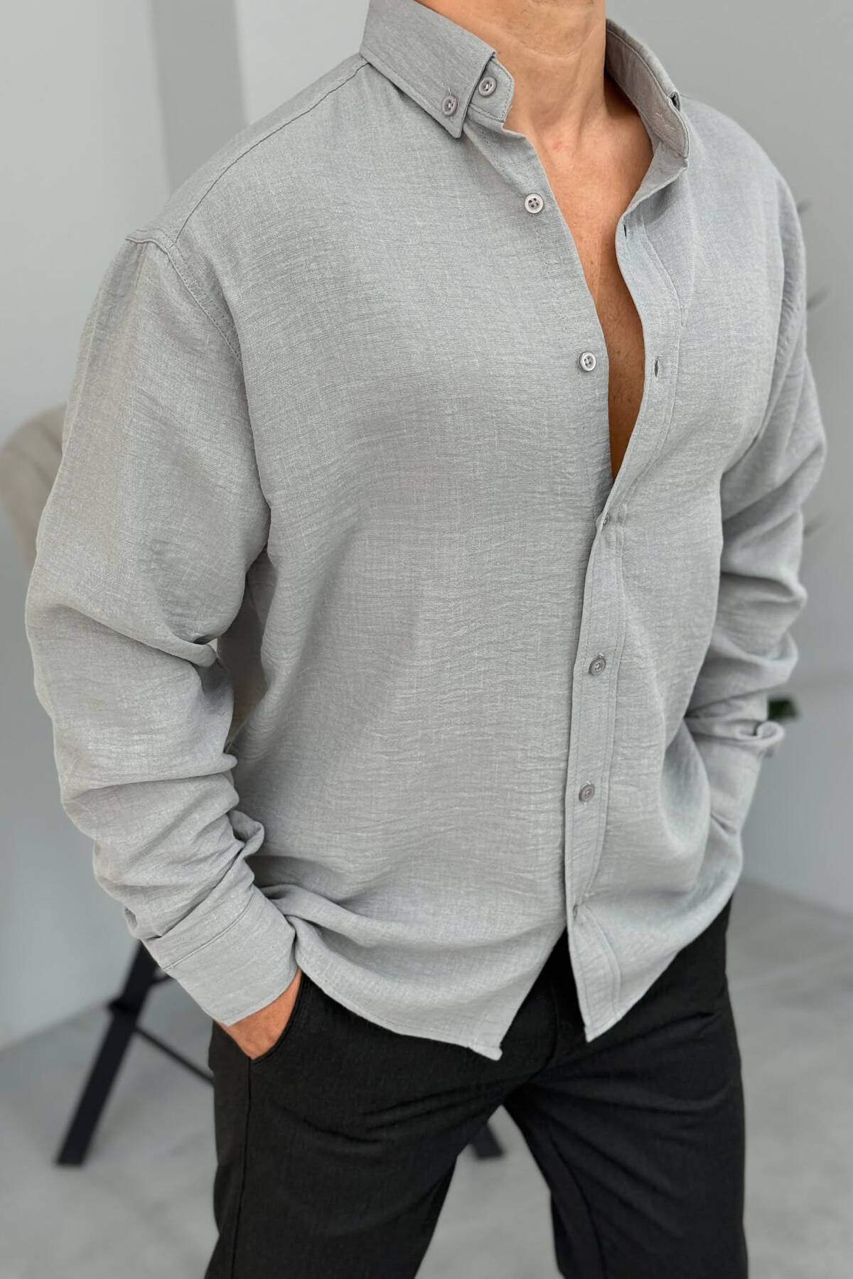 ONE COLOR SIMPLE MEN SHIRT GREY/GRI