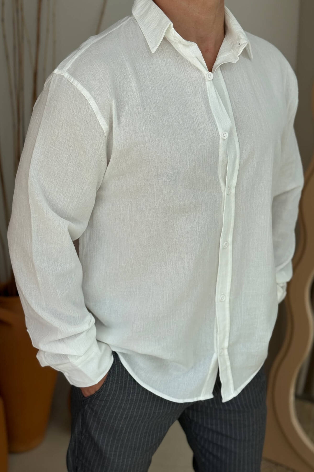 ONE COLOR SIMPLE MEN SHIRT WHITE-E BARDHE