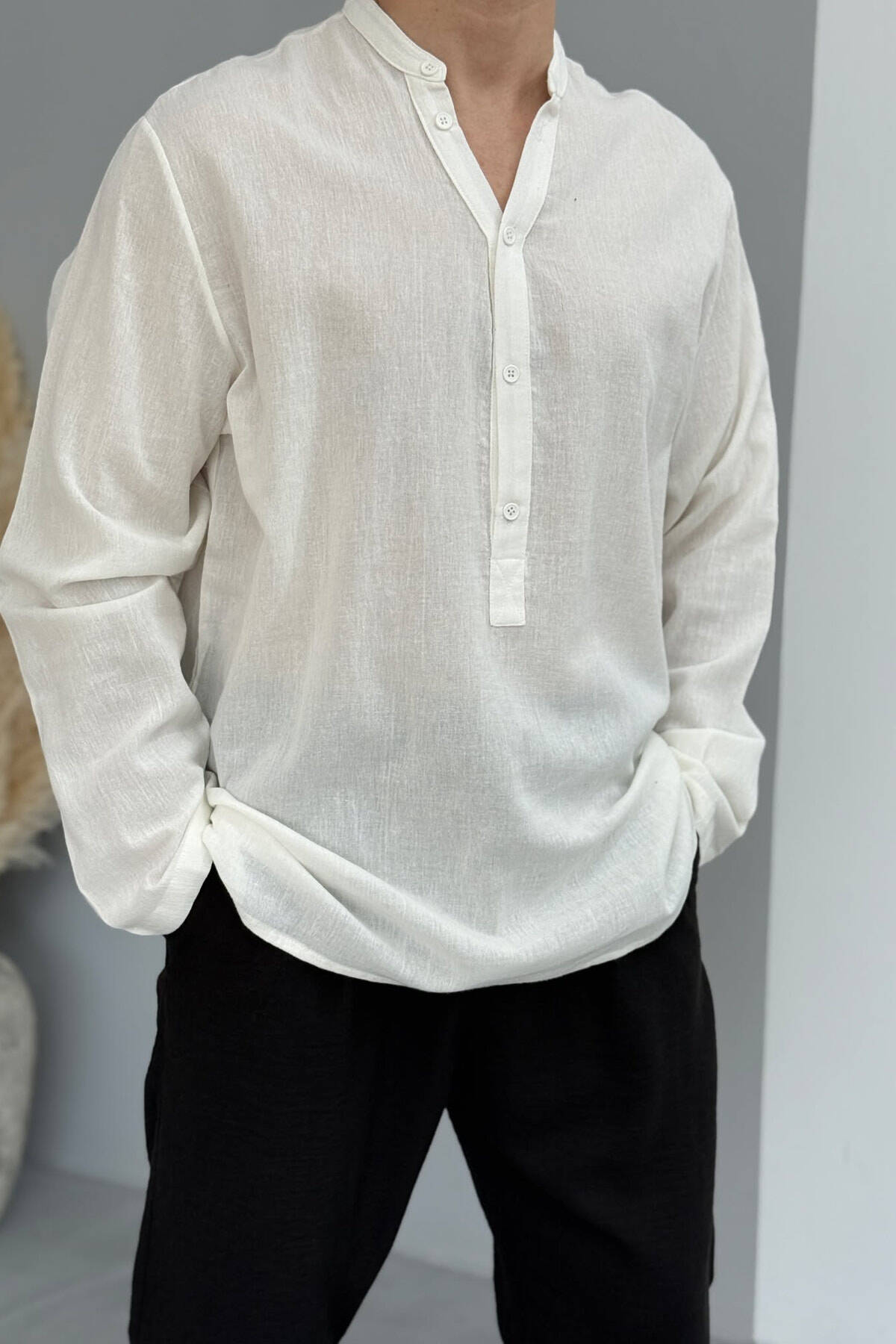 ROUND BUTTONED NECK ONE COLOR MEN SHIRT LIGHT GREY/GZ