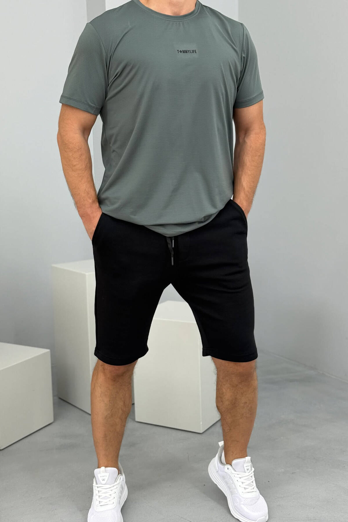 ONE COLOR SIMPLE MEN SHORT SWEATPANTS BLACK/ E ZEZE