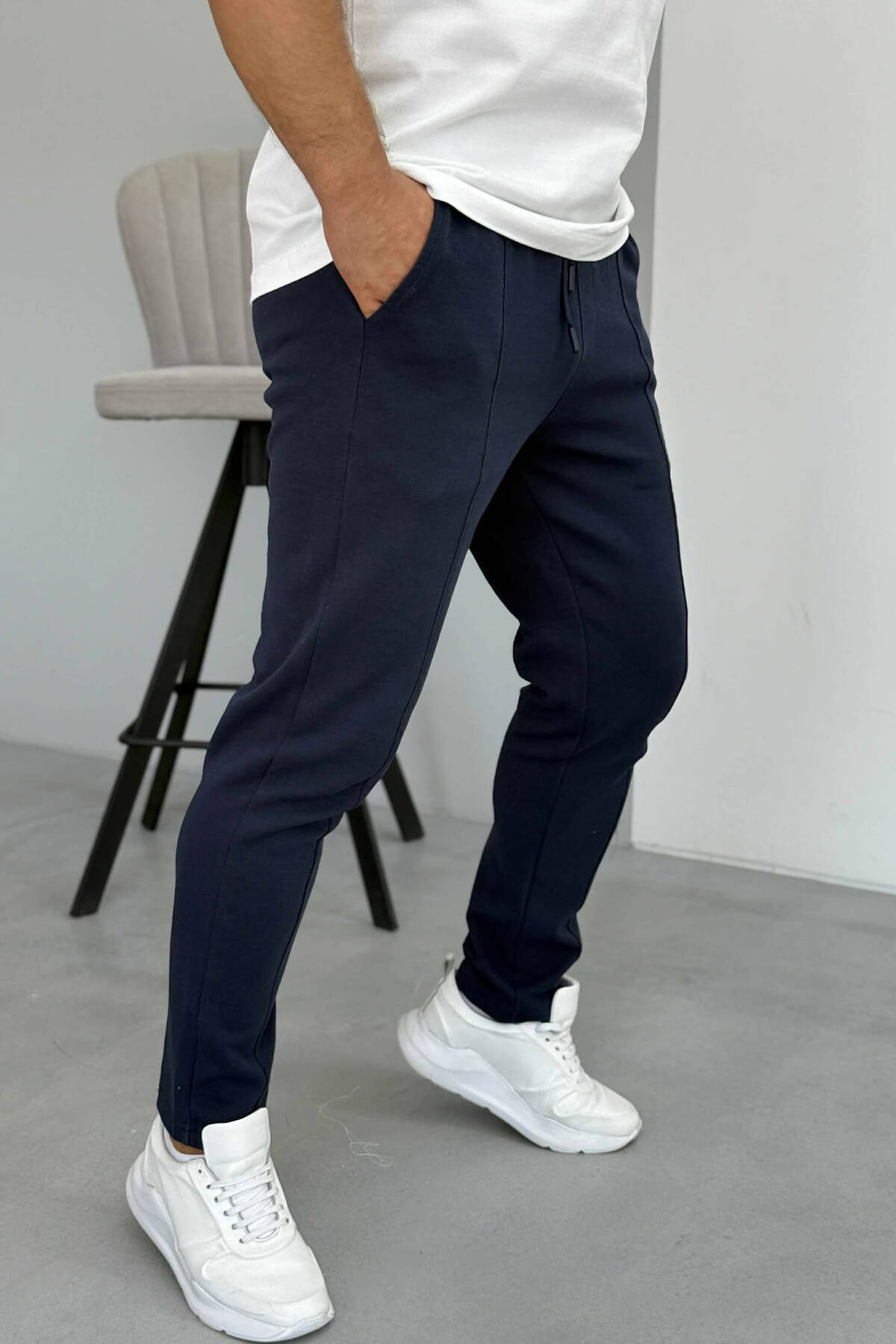 ONE COLOR SIMPLE MEN JOGGERS DARK BLUE/BEE