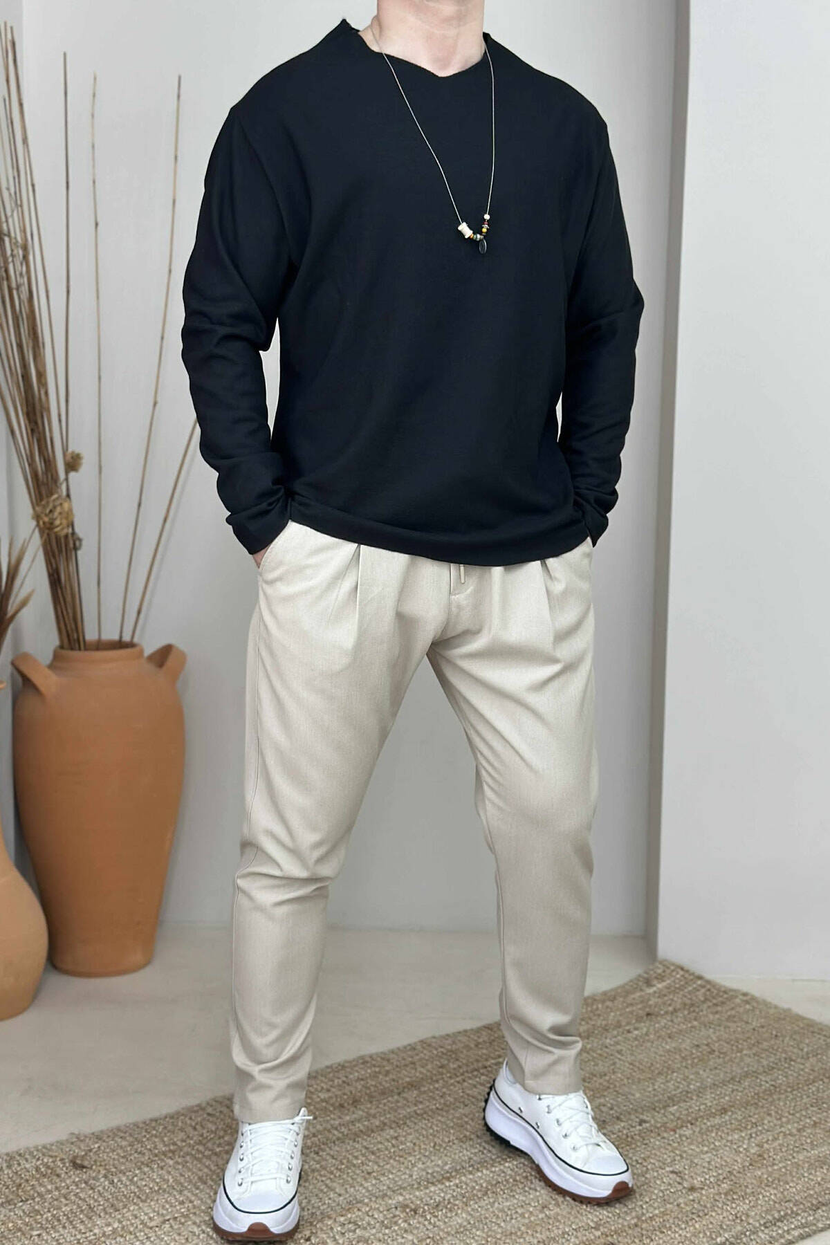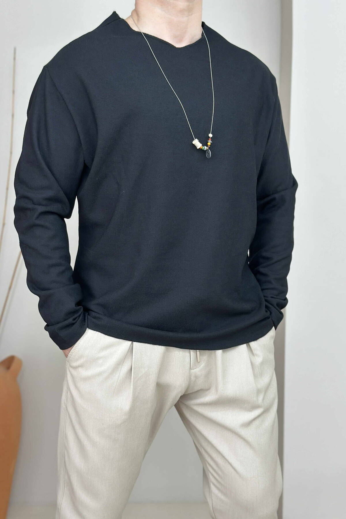 BLUZË NJË NGJYRËSHE E THJESHTË PËR MESHKUJ NË NGJYRËN E ZEZË