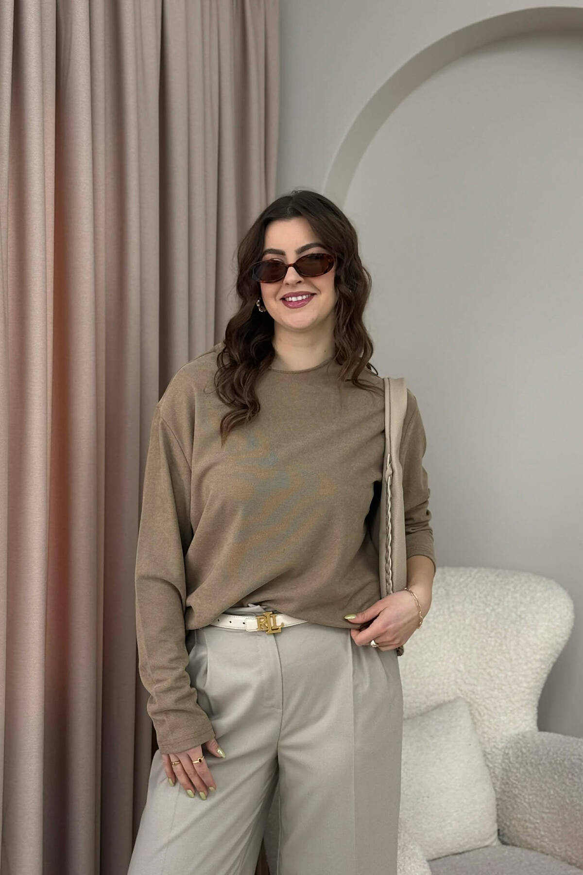 ONE COLOR SIMPLE WOMEN SWEATSHIRT BROWN/KAFE