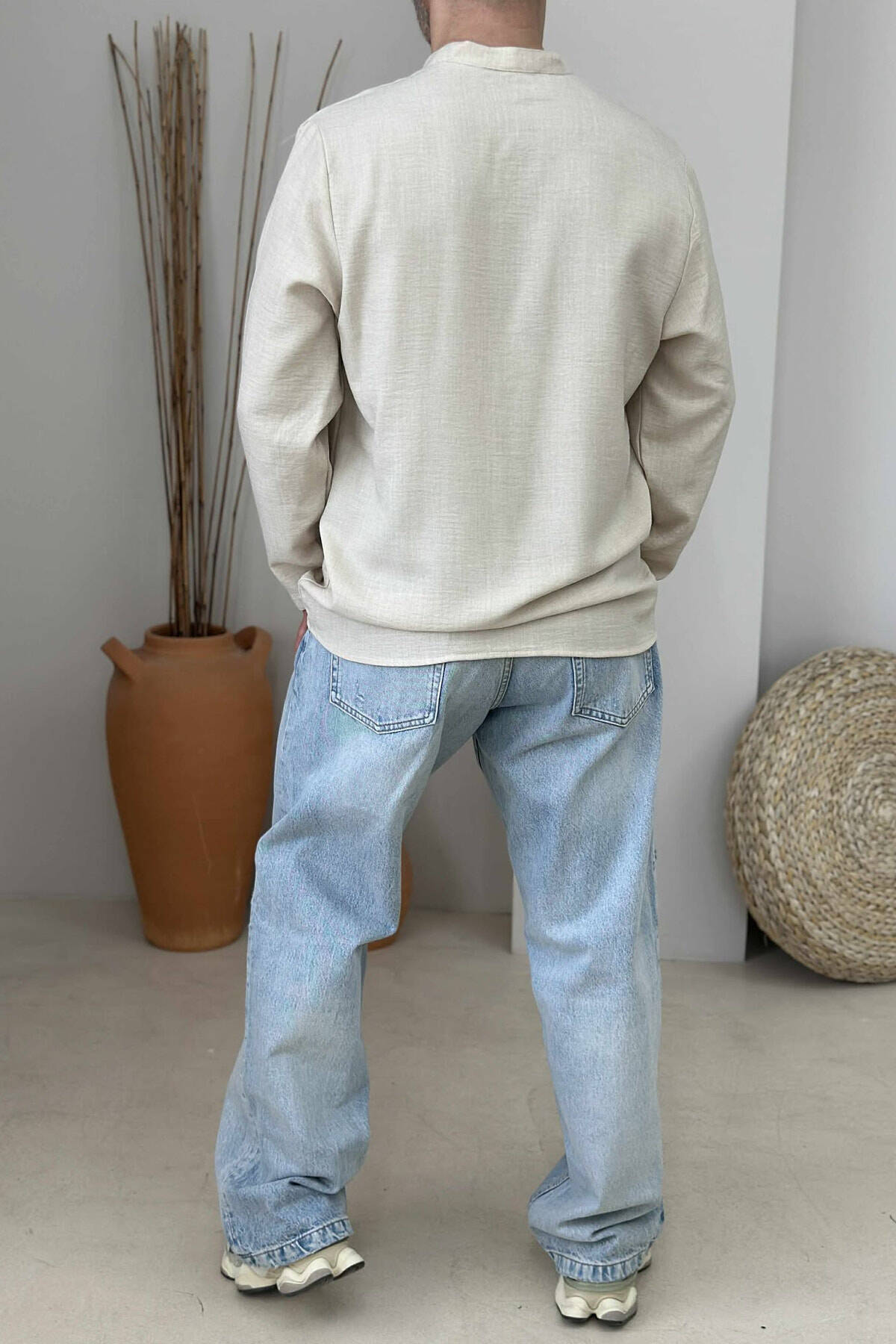 ROUND BUTTONED NECK ONE COLOR MEN SHIRT BEIGE/BEZHE