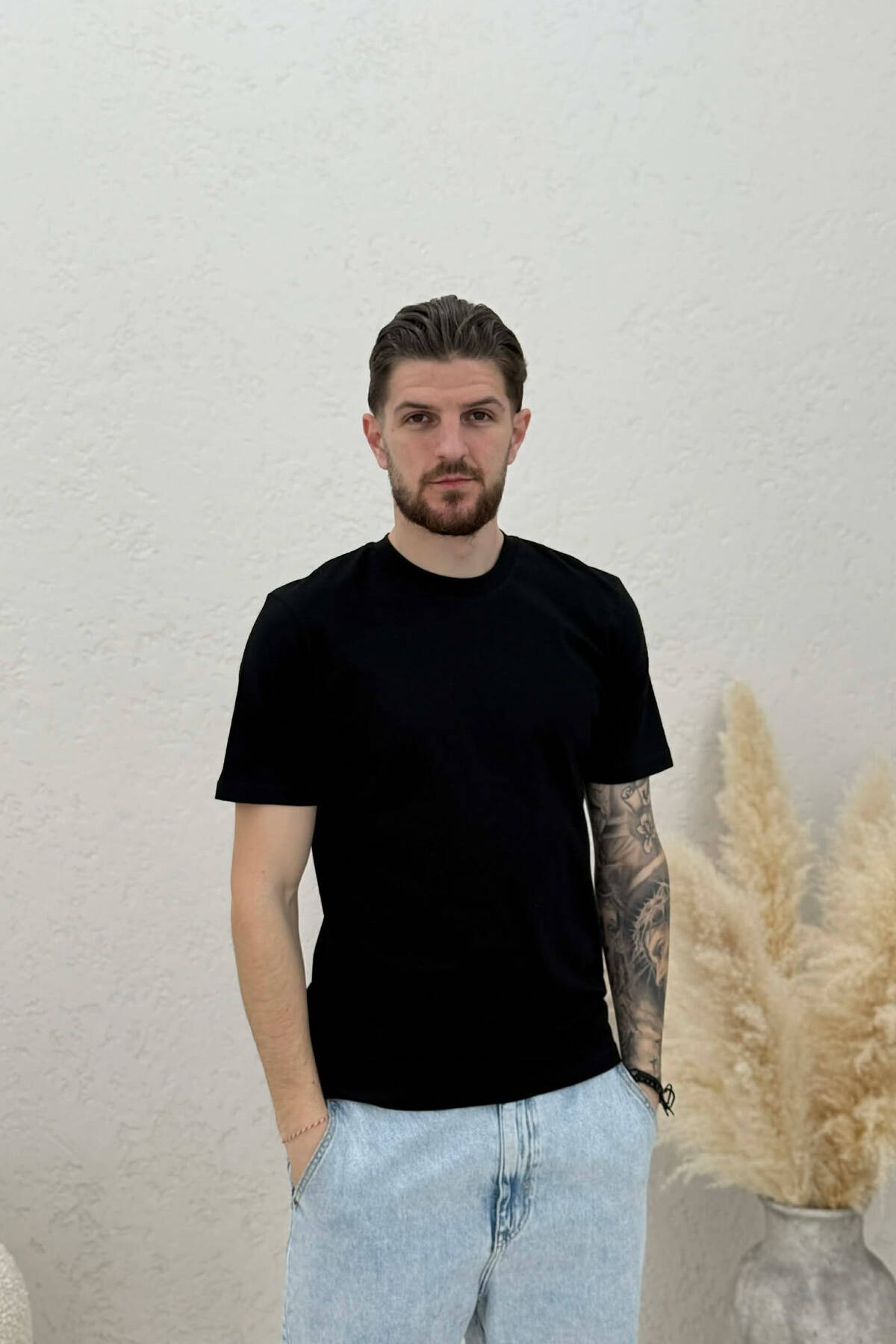 T-SHIRT NJË NGJYRËSH I THJESHTË PËR MESHKUJ NË NGJYRËN E ZEZË