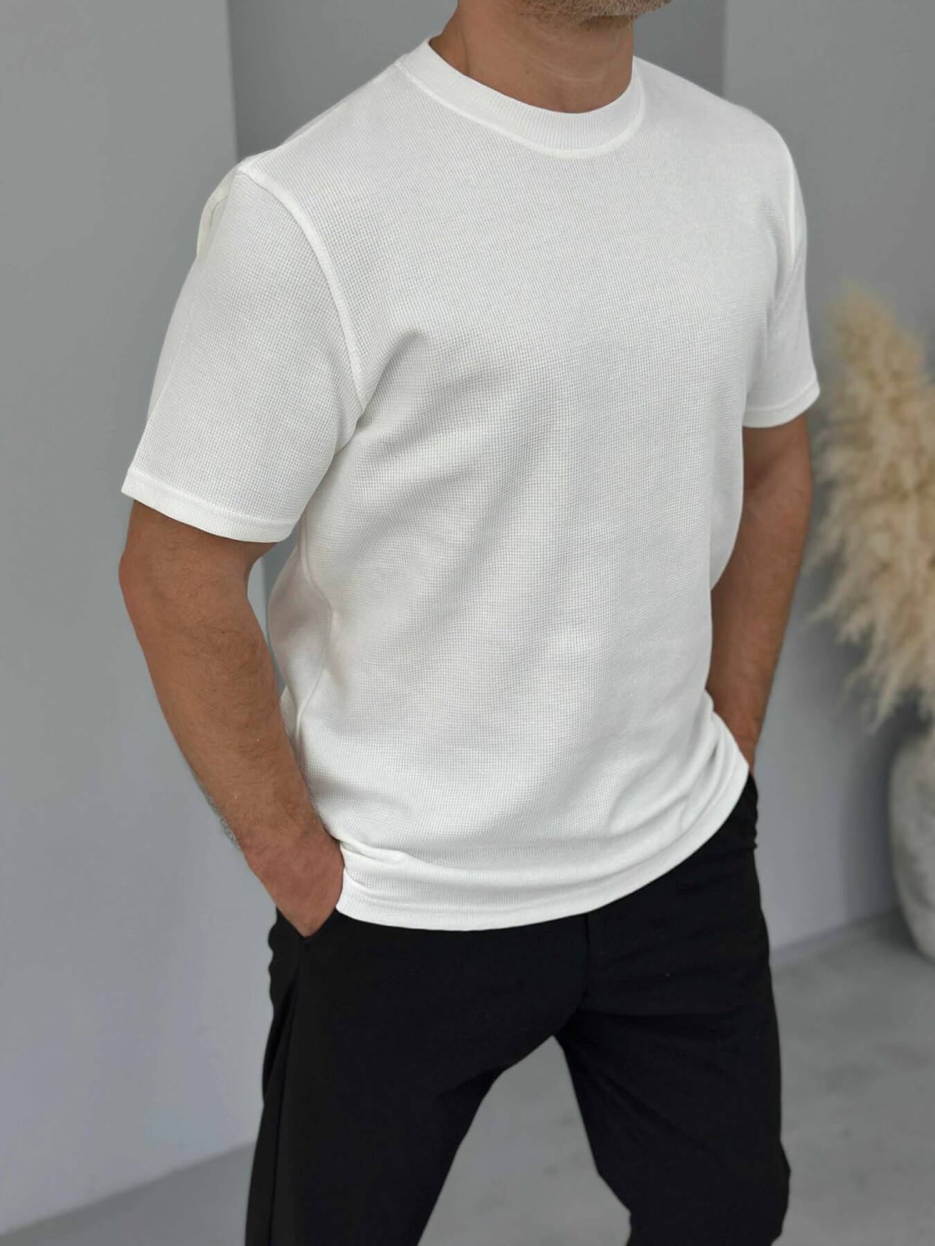 T-SHIRT NJË NGJYRËSH I THJESHTË PËR MESHKUJ NË NGJYRËN KREM