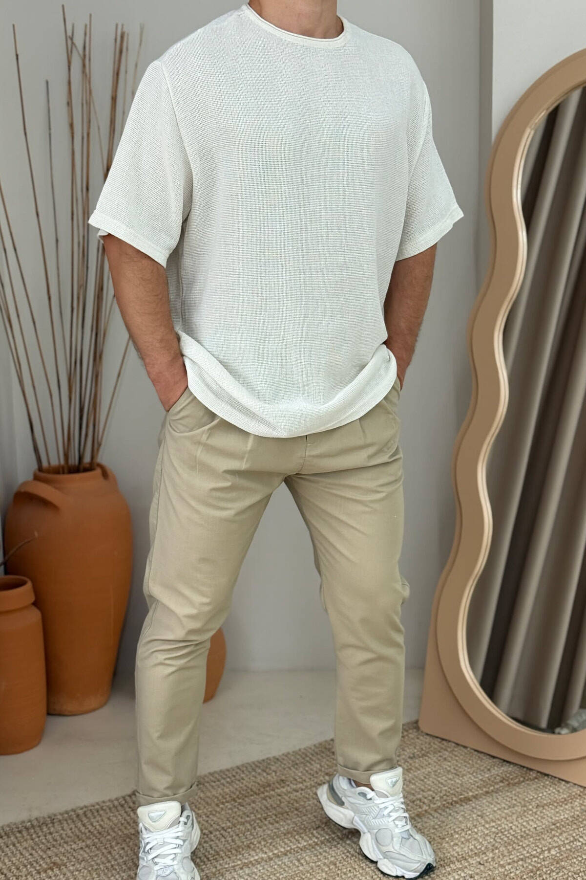 ONE COLOR SIMPLE MEN T-SHIRT CREAM/KREM