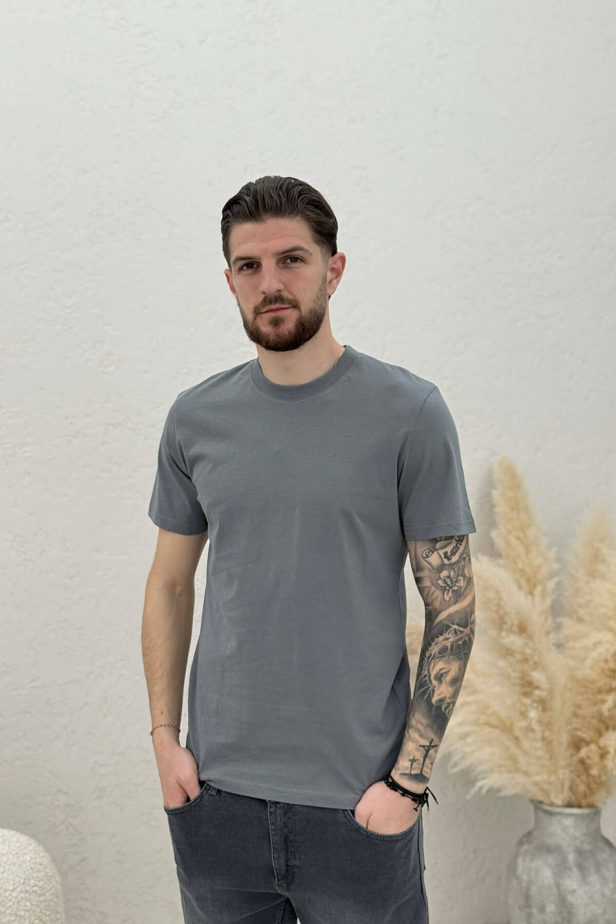 ONE COLOR SIMPLE MEN T-SHIRT DARK GREY/GEE