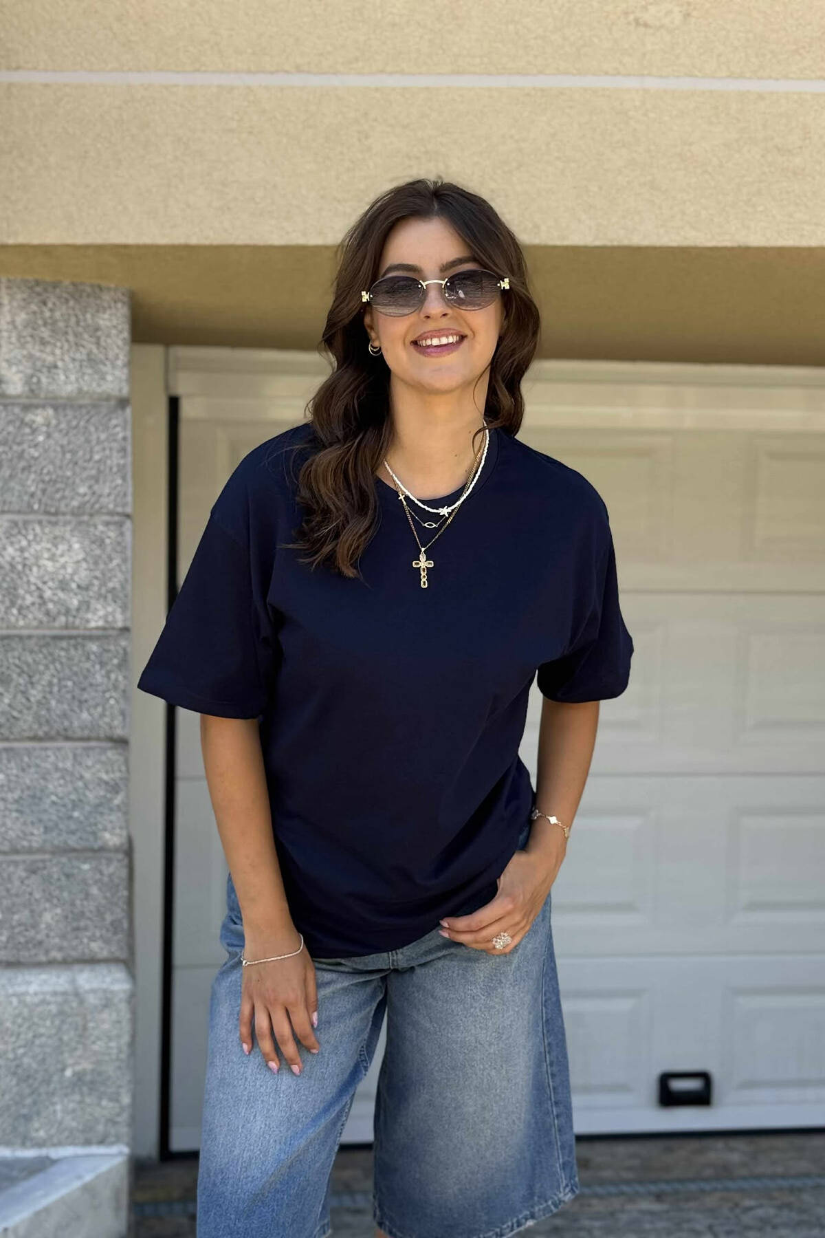 ONE COLOR SIMPLE ROUND NECK WOMEN T-SHIRT BLUE/BLU