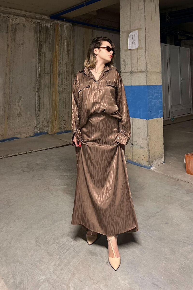 ONE COLOR SIMPLE SHIRT+SKIRT WOMEN SET LIGHT BROWN/KAZB