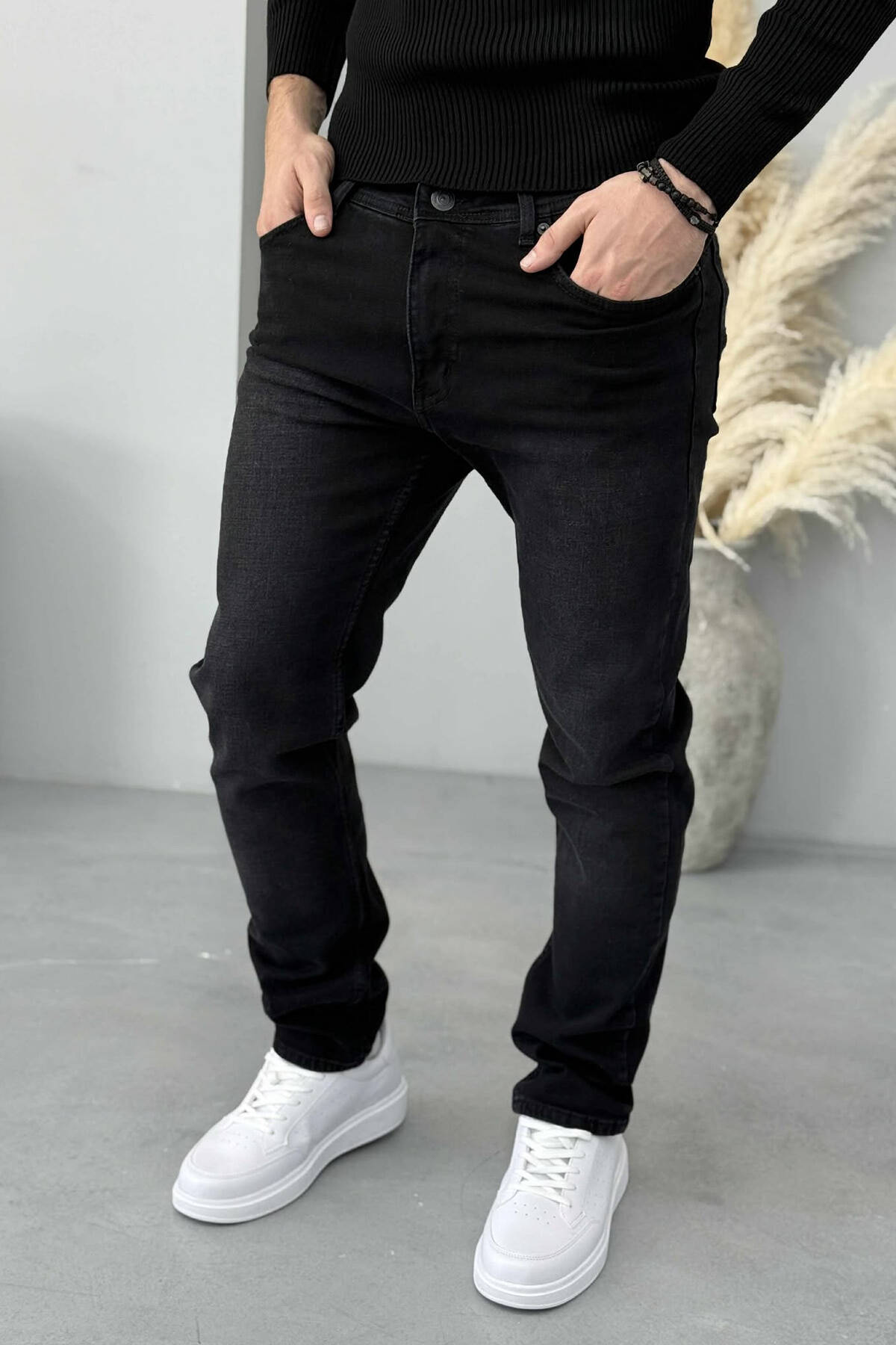 ONE COLOR STRETCHY MEN JEANS BLACK/ E ZEZE