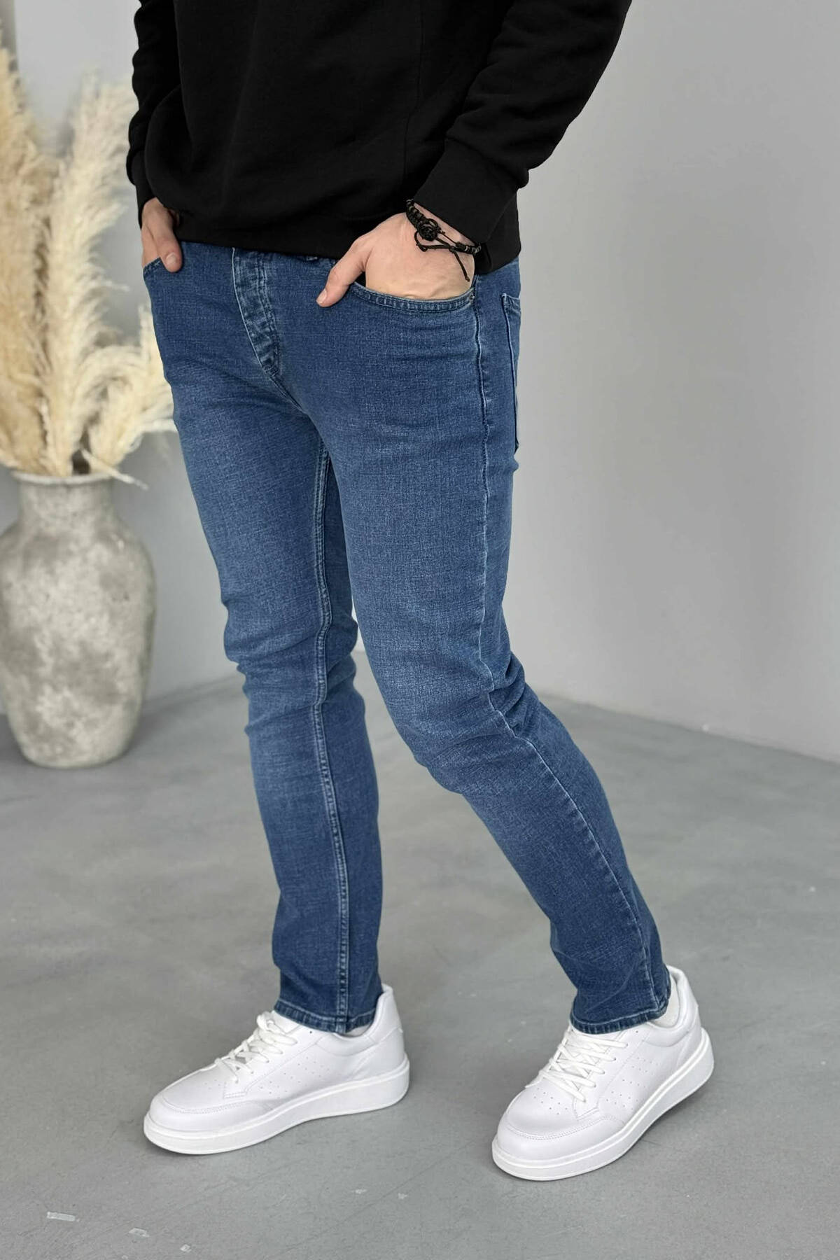 ONE COLOR STRETCHY MEN JEANS DARK BLUE/BEE