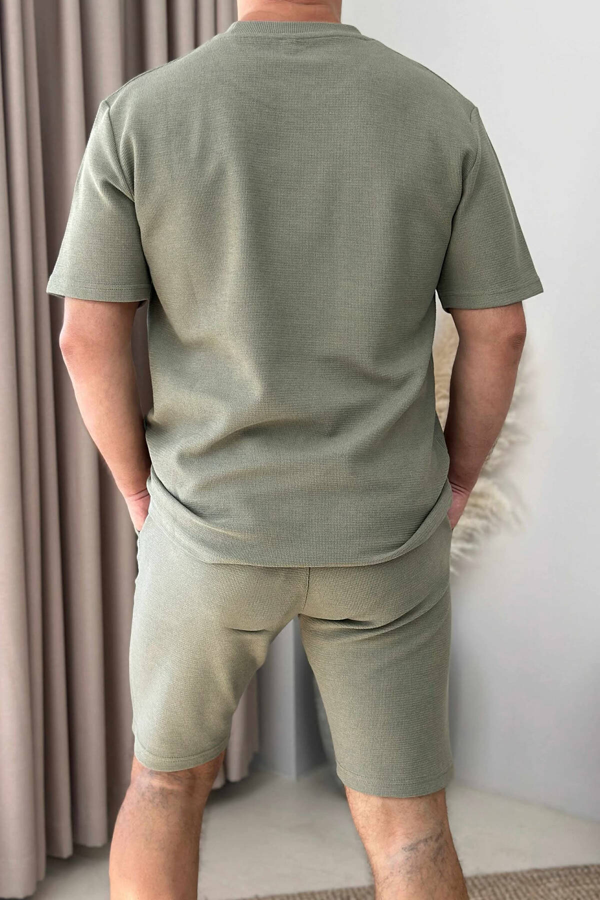 T-SHIRT+SHORTS ROUND NECK SIMPLE MEN SET CREAM-OLIVE
