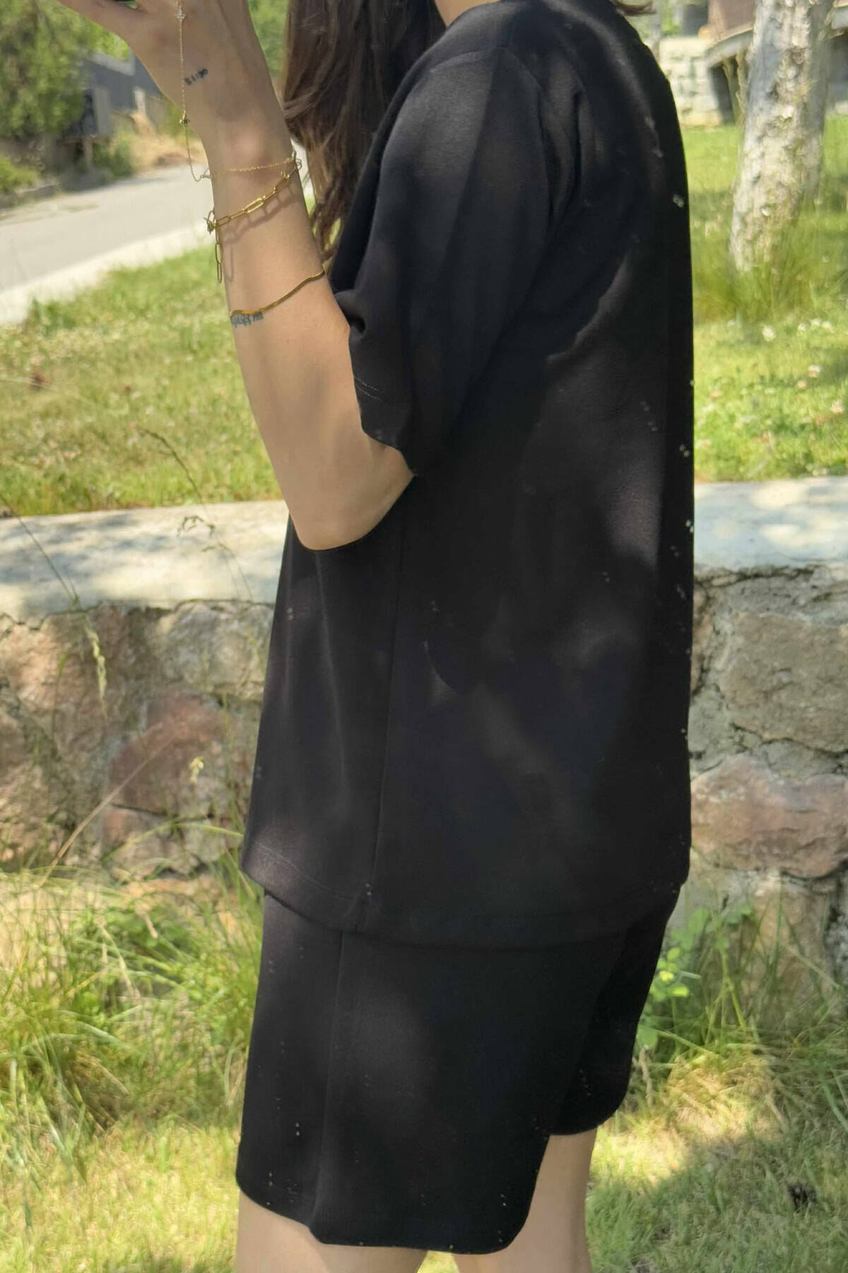 ONE COLOR SIMPLE T-SHIRT+SHORTS WOMEN SET BLACK/ E ZEZE