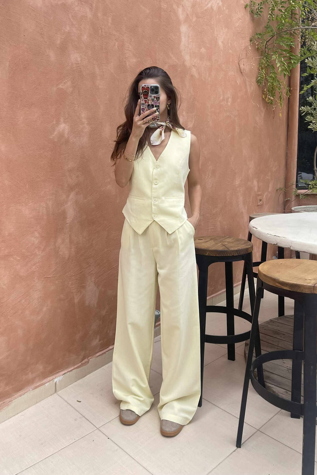 VEST+TROUSERS BACK BELT DETAIL WOMEN SET YELLOW/E VERDHE