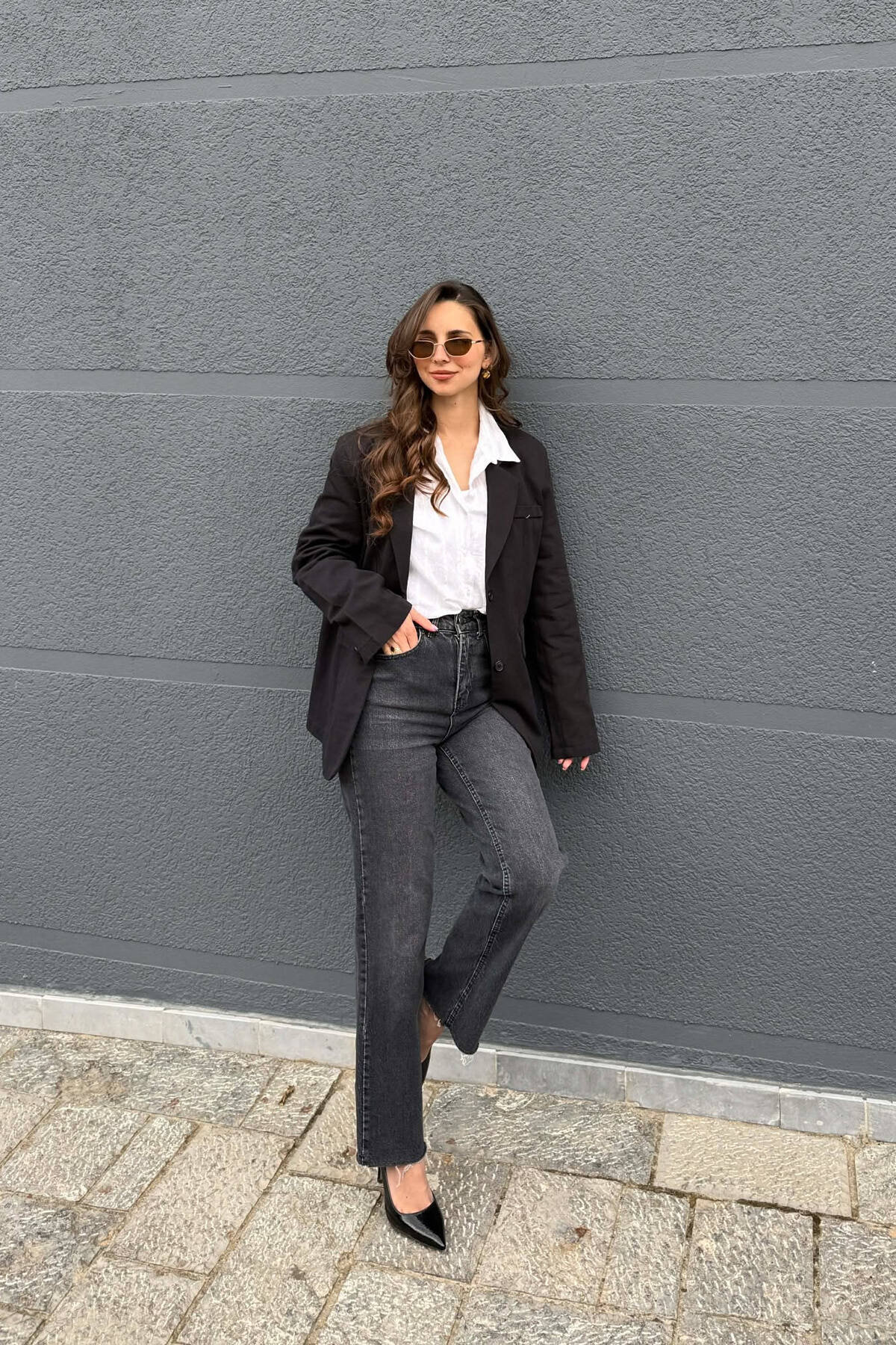 ONE COLOR GOLD BUTTON CLASSIC WOMAN JACKET BLACK/ E ZEZE