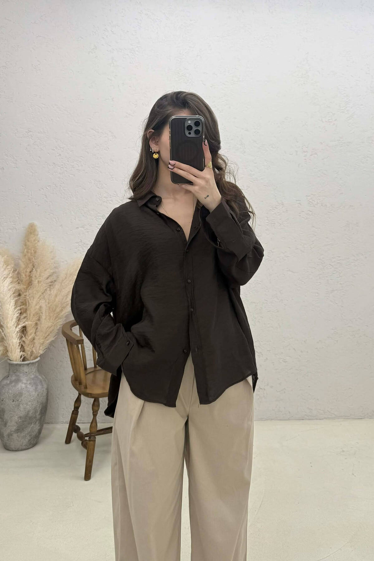 ONE COLOR SIMPLE WOMAN SHIRT BROWN/KAFE