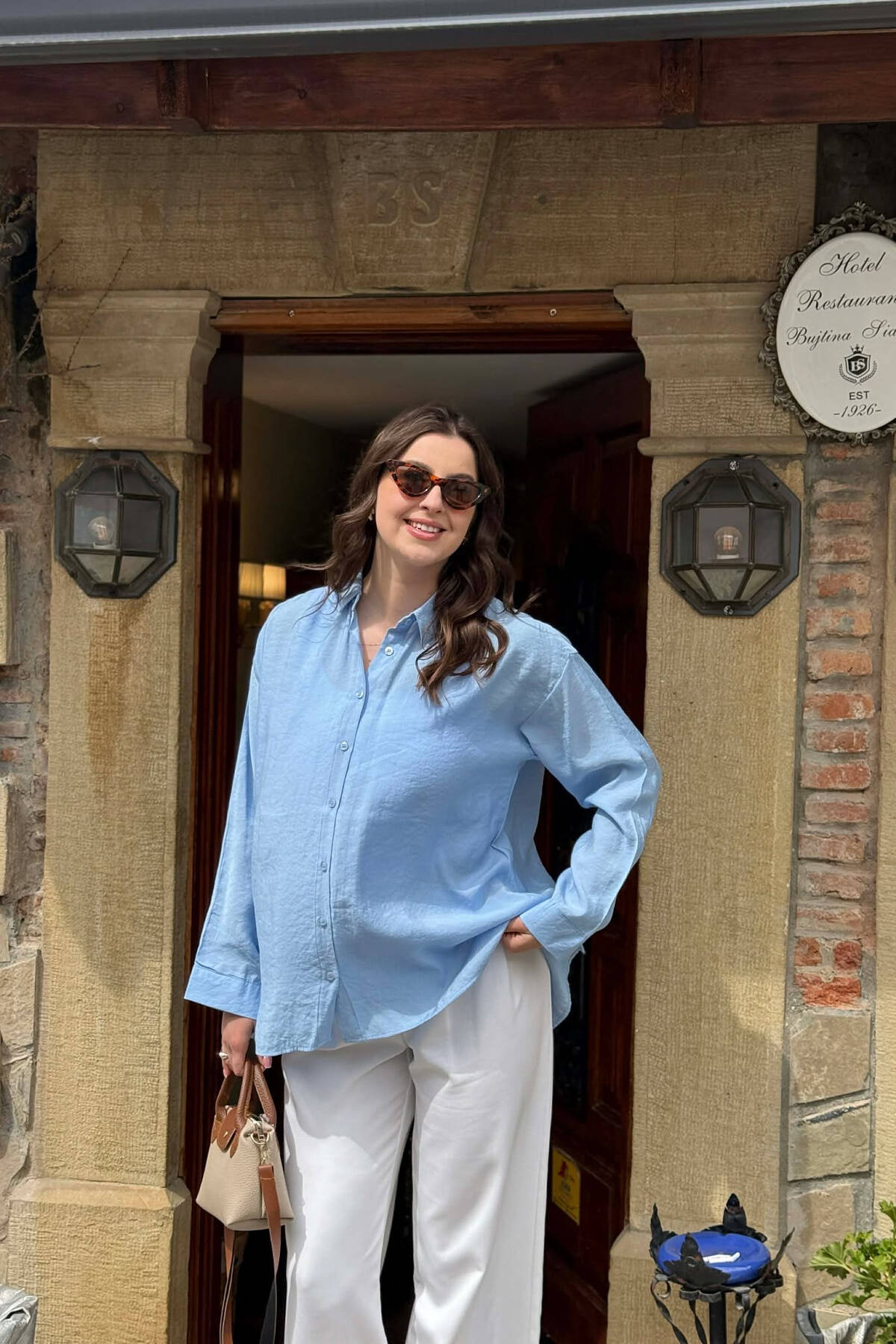 ONE COLOR SIMPLE WOMAN SHIRT LIGHTBLUE/BZ