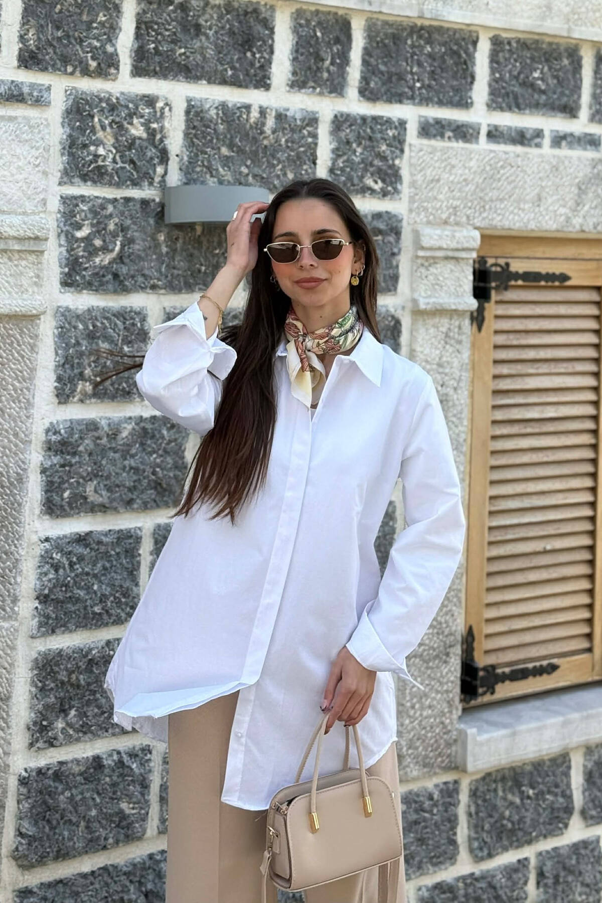 LONG SLEEVES ONE COLOR SIMPLE WOMEN SHIRT WHITE-E BARDHE