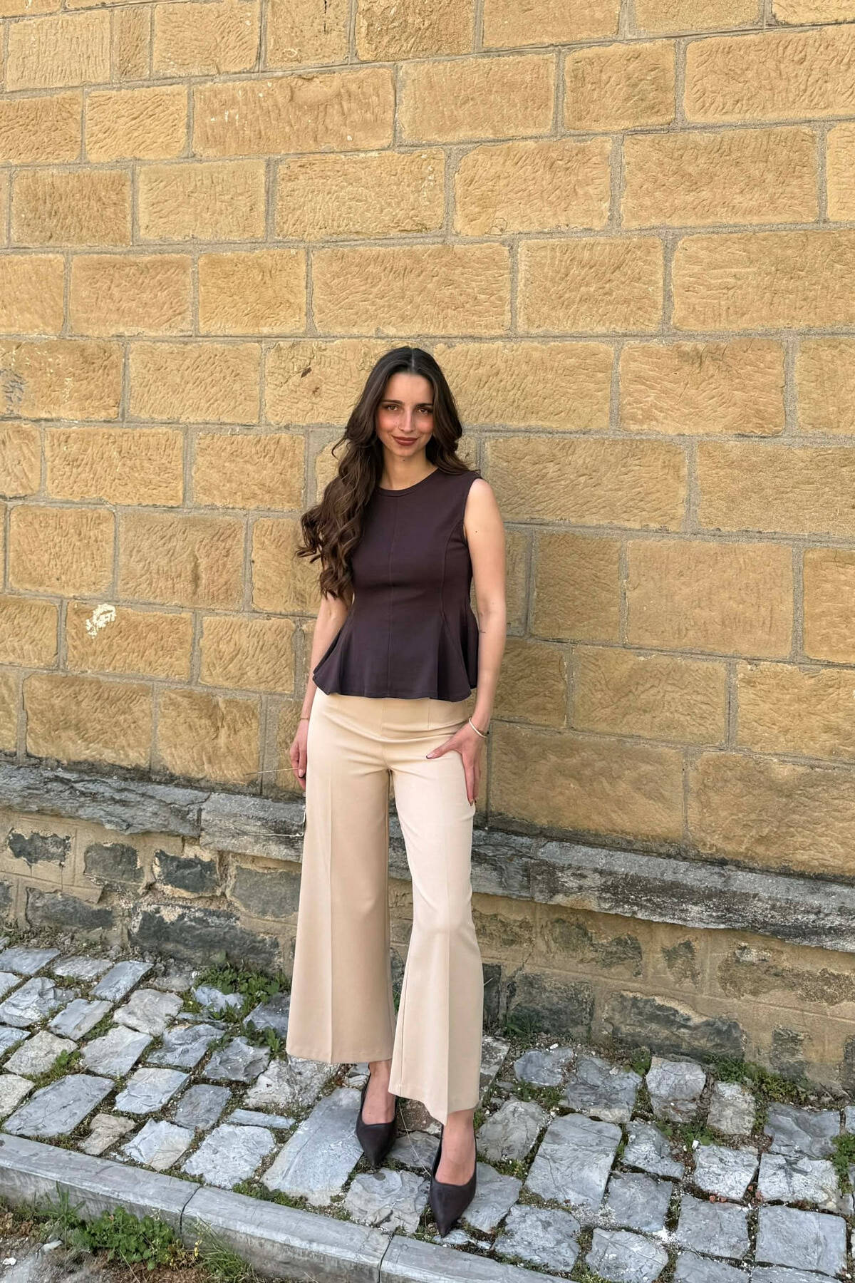 ONE COLOR BUTTON DETAILS WOMAN TANK TOP BROWN/KAFE