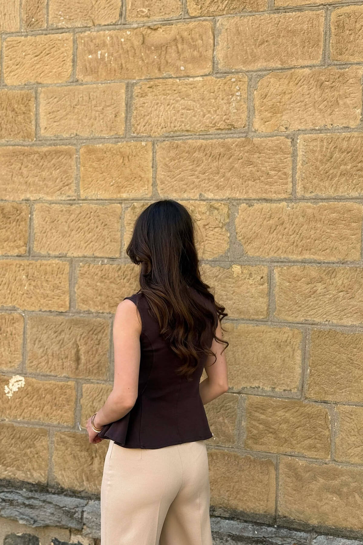 ONE COLOR BUTTON DETAILS WOMAN TANK TOP DARK BROWN/KAE