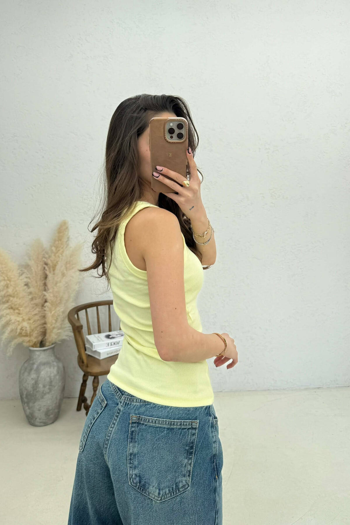 PEARLS RIBBON DETAILS WOMAN TANK TOP YELLOW/E VERDHE