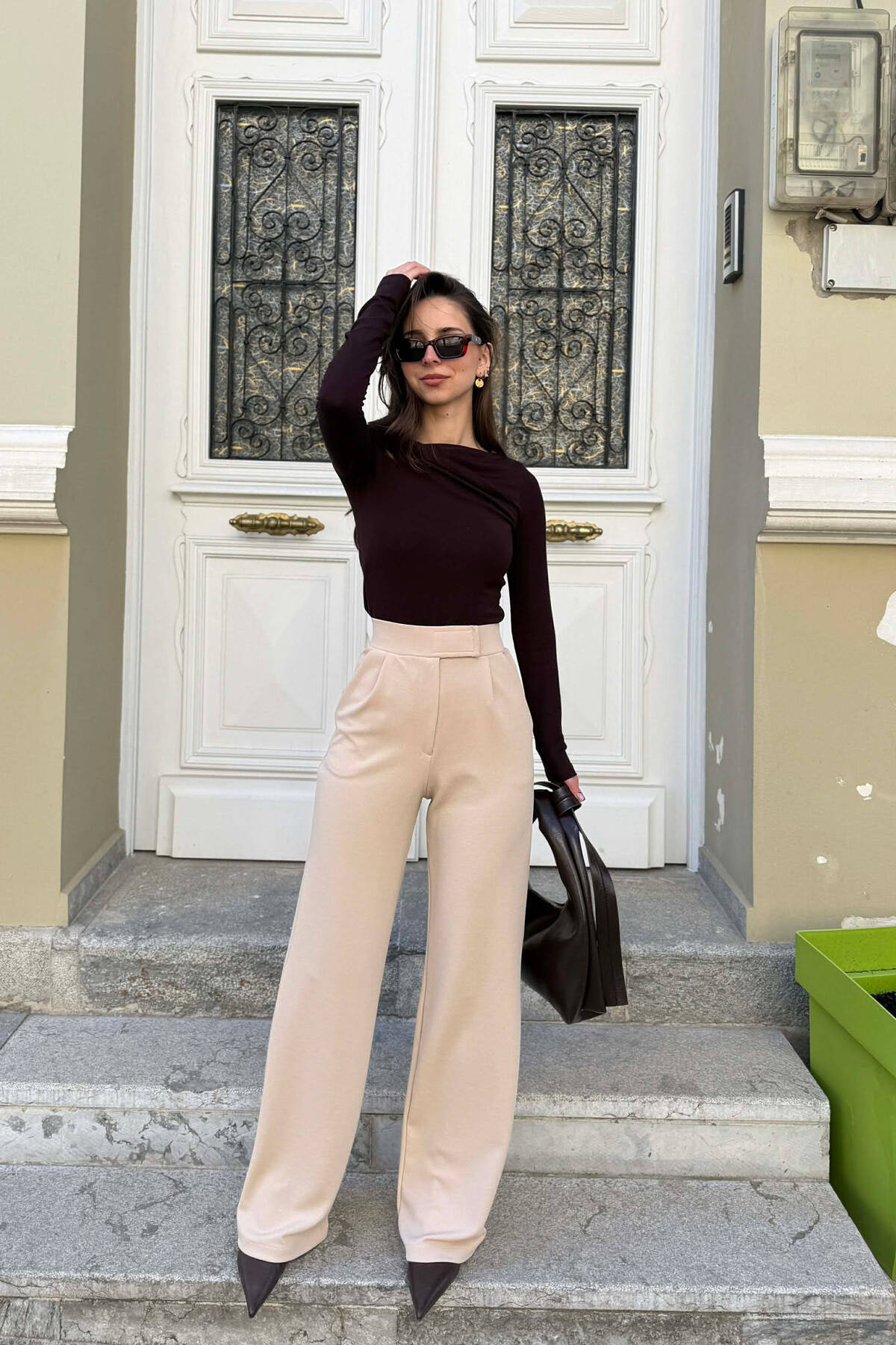 ONE COLOR BELT DETAIL WOMAN TROUSERS BROWN/KAFE
