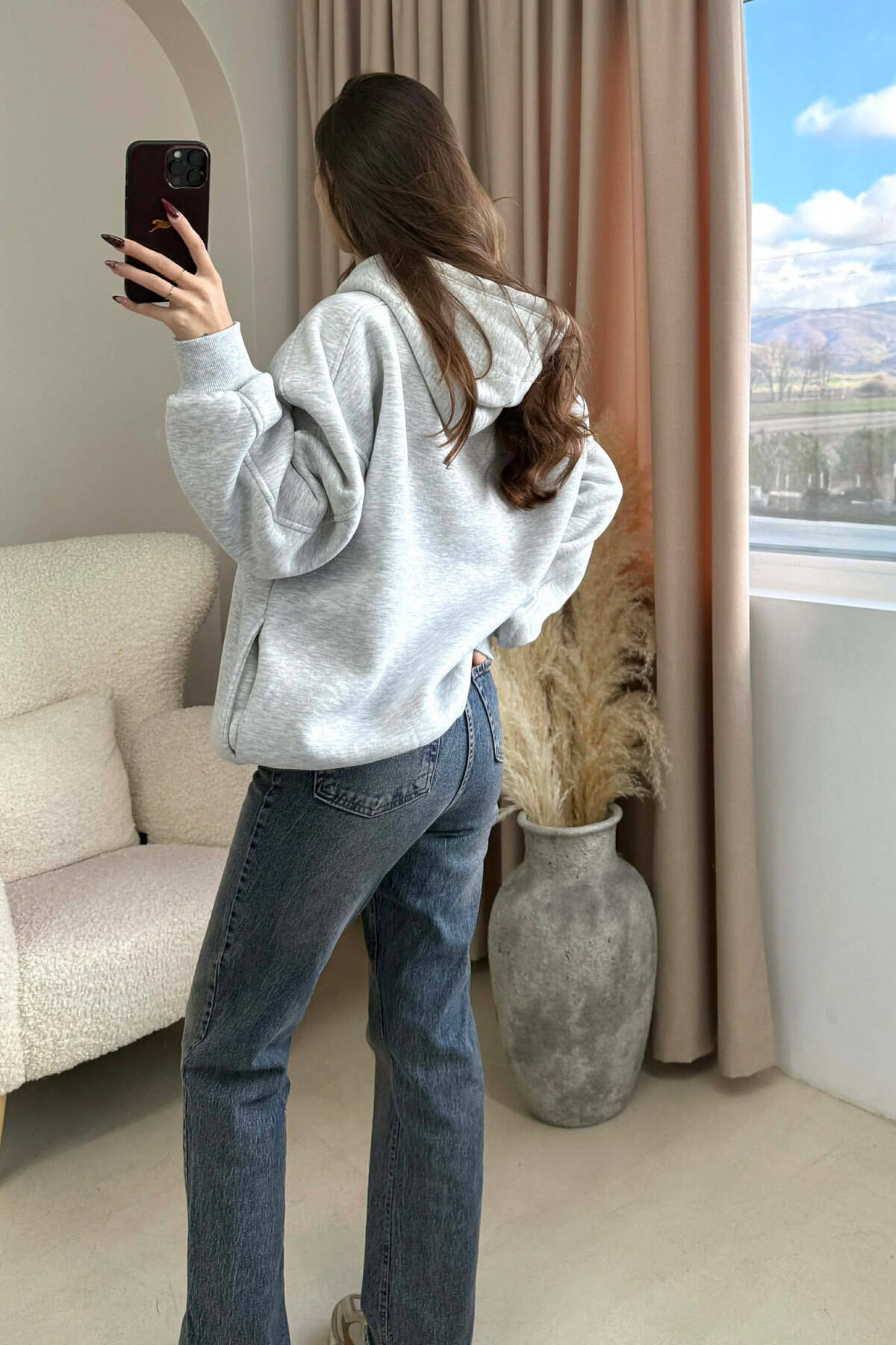 ONE COLOR FLUFFY WOMAN HOODIE LIGHT GREY/GZ