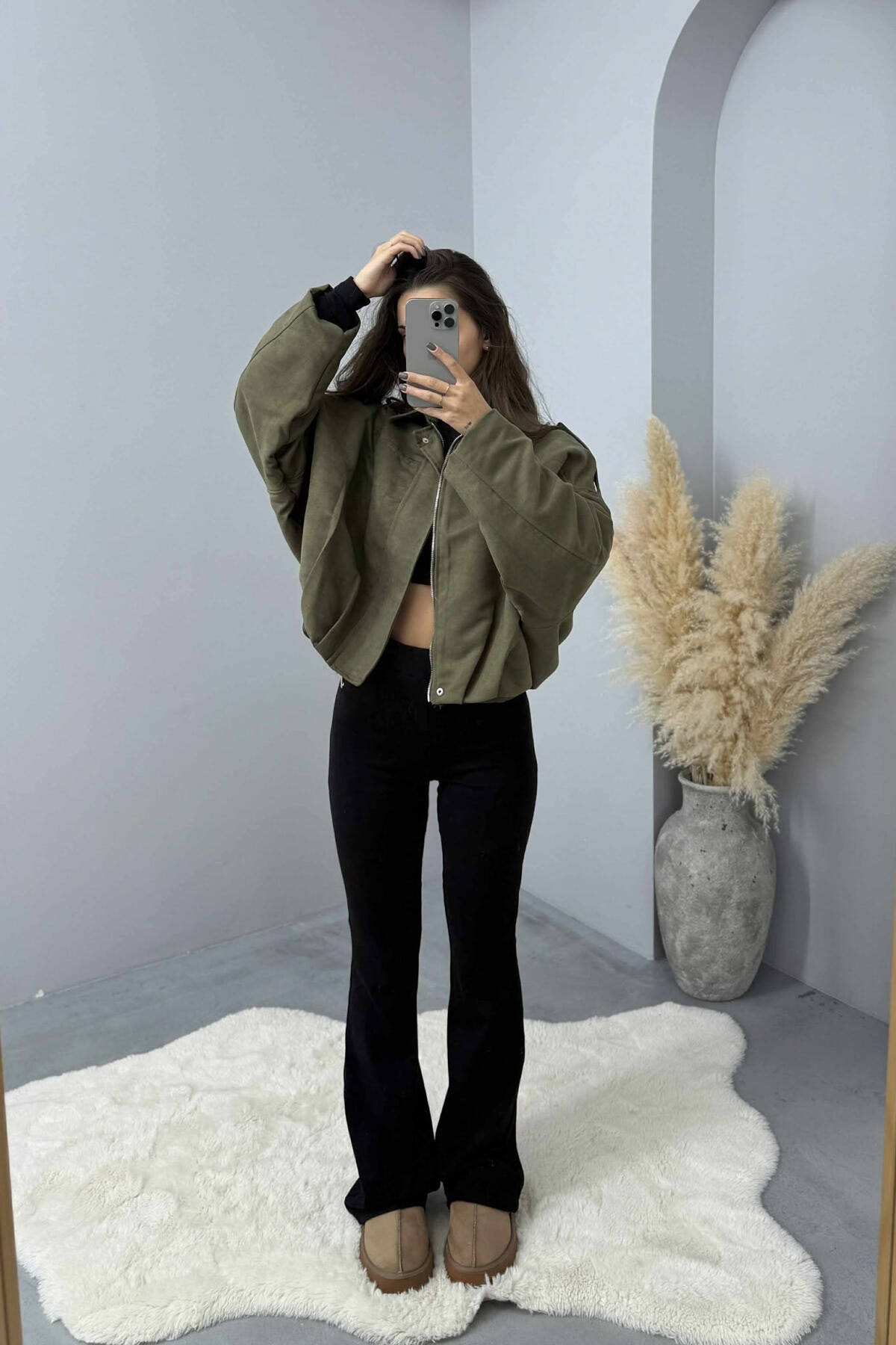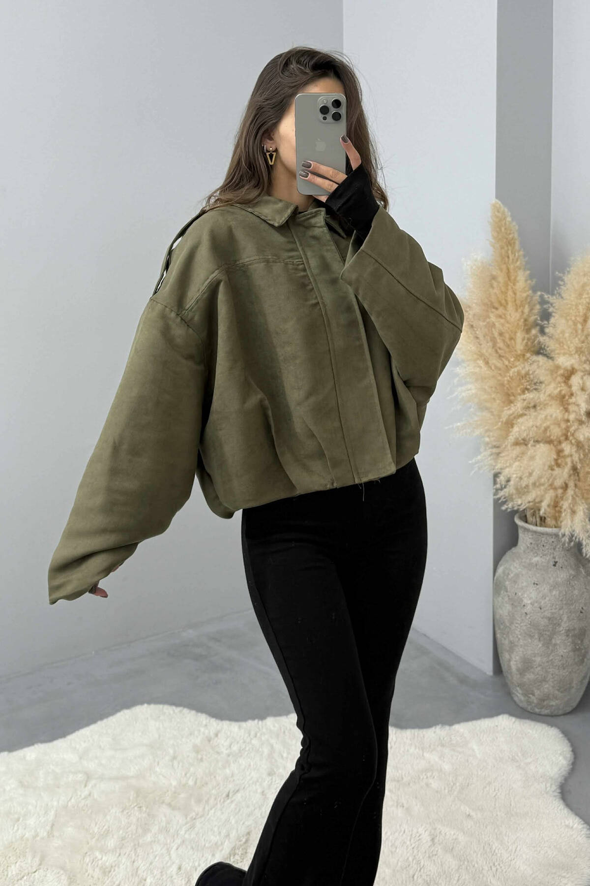ONE COLOR SIMPLE WOMEN JACKET GREEN/JESHILE