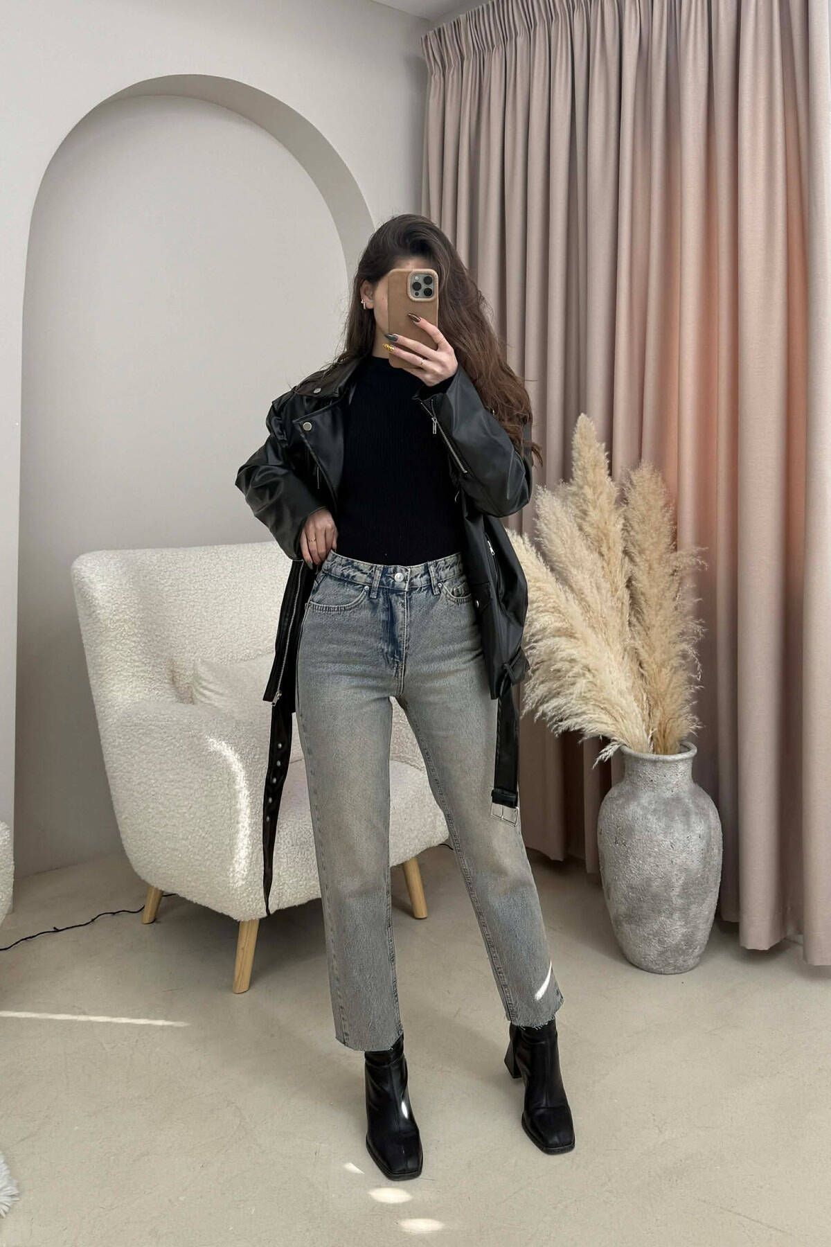 ONE COLOR BELT DETAIL WOMAN JEANS LIGHTBLUE/BZ
