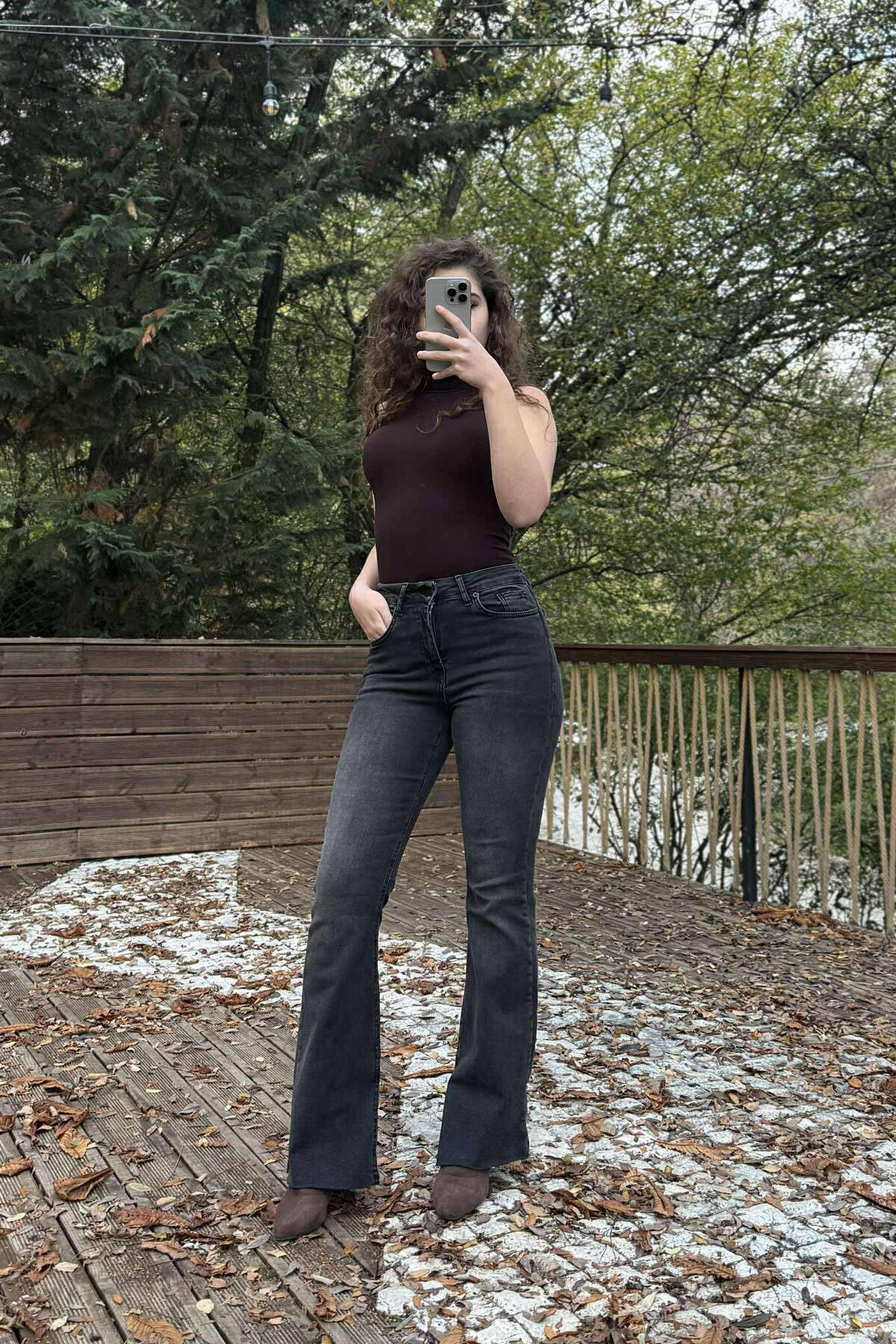 ONE COLOR SIMPLE WOMAN JEANS DARK GREY/GEE