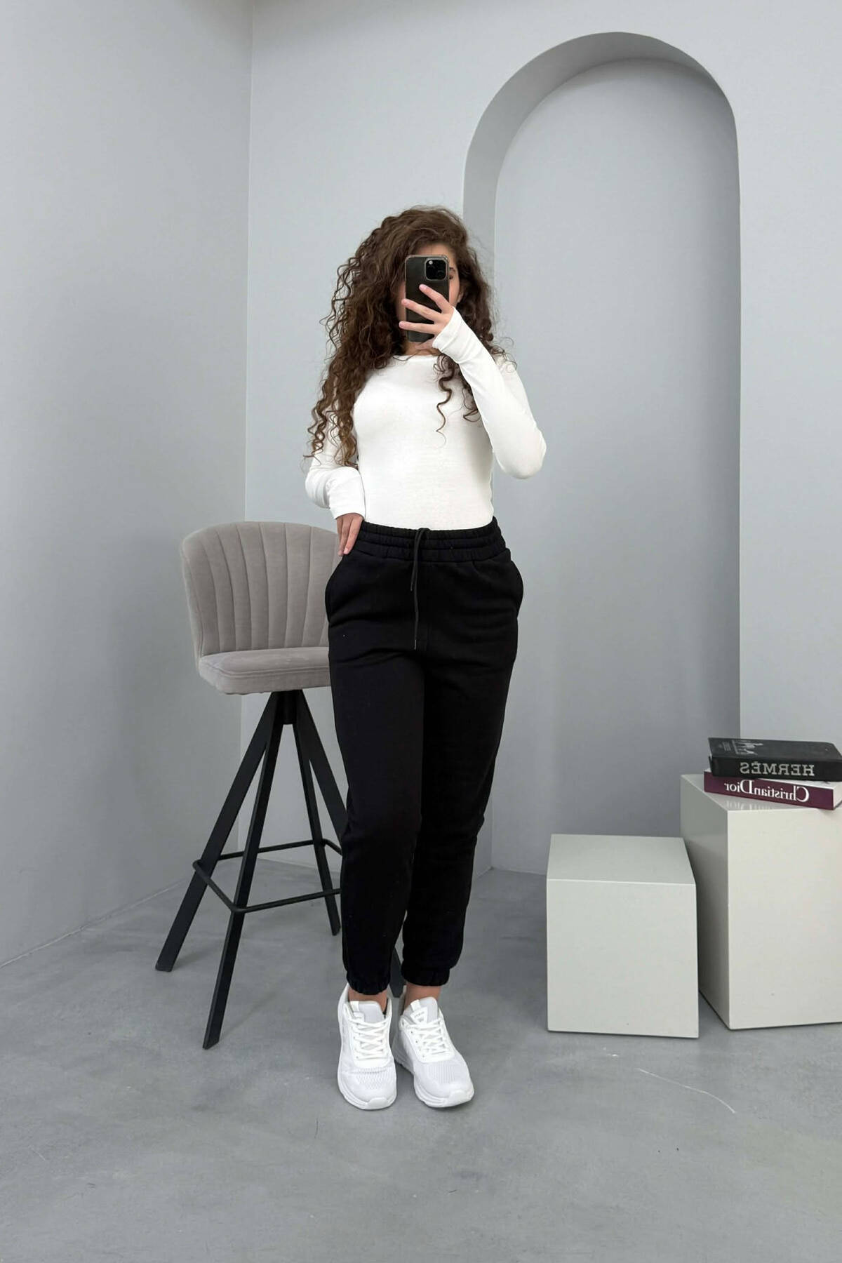 ONE COLOR SIMPLE FLUFFY WOMEN SWEATPANTS BLACK/ E ZEZE