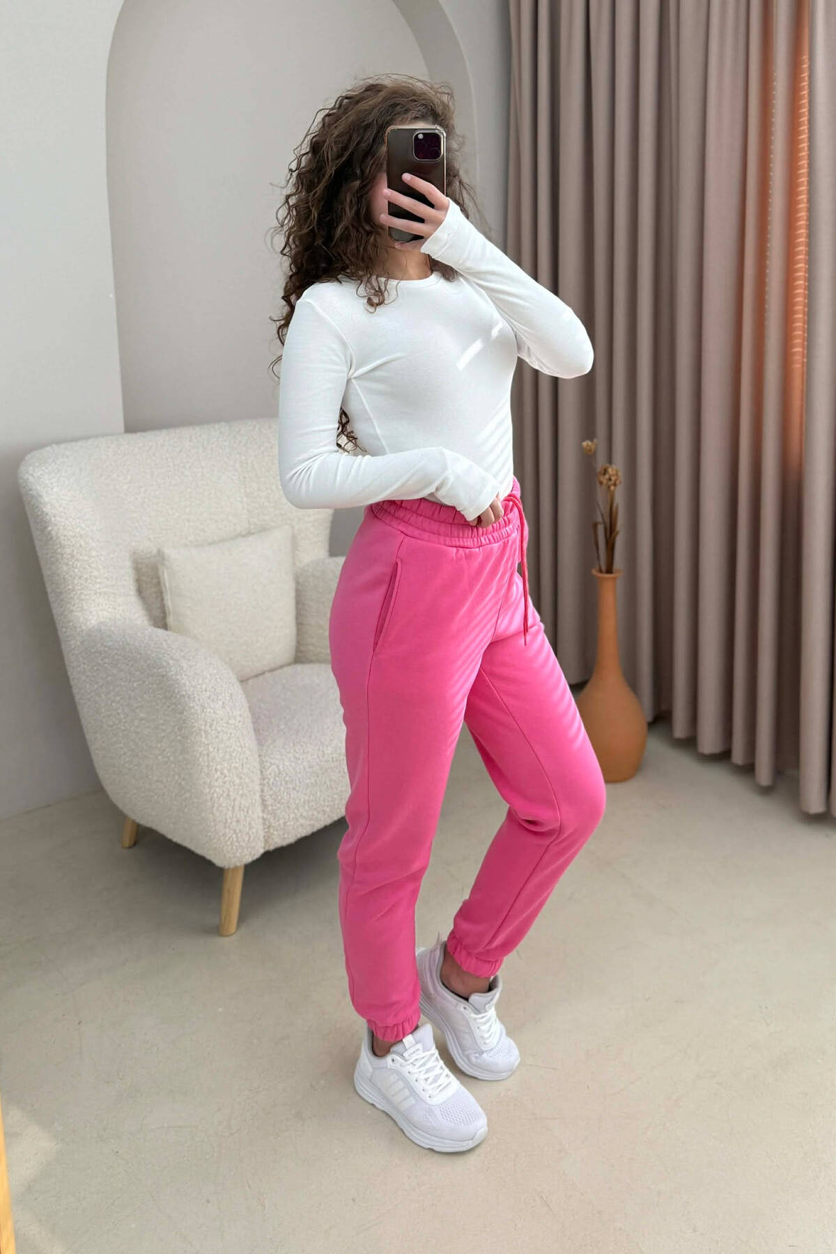 ONE COLOR SIMPLE WOMEN JOGGERS PINK/ROZE