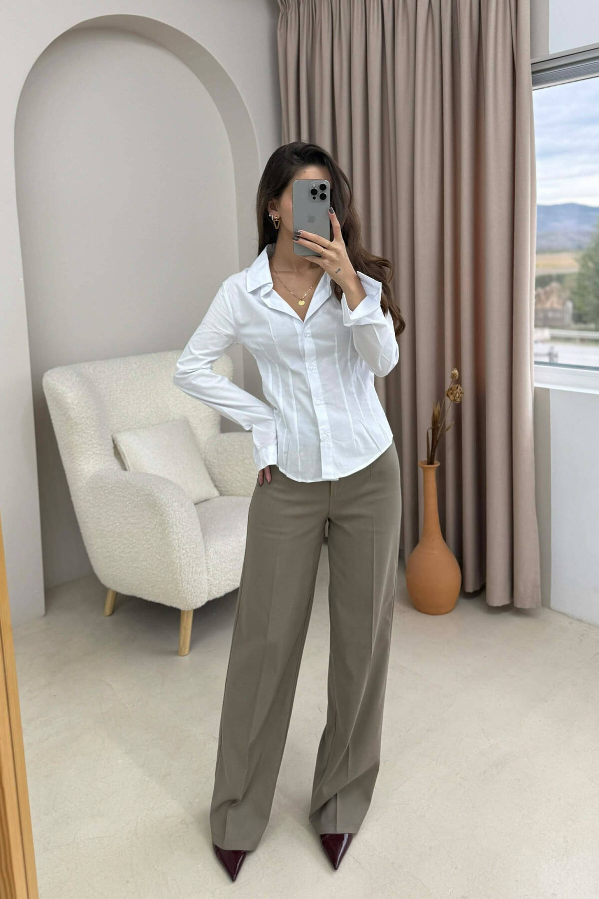 SINGLE POCKET ONE COLOR WOMEN SHIRT BROWN/KAFE